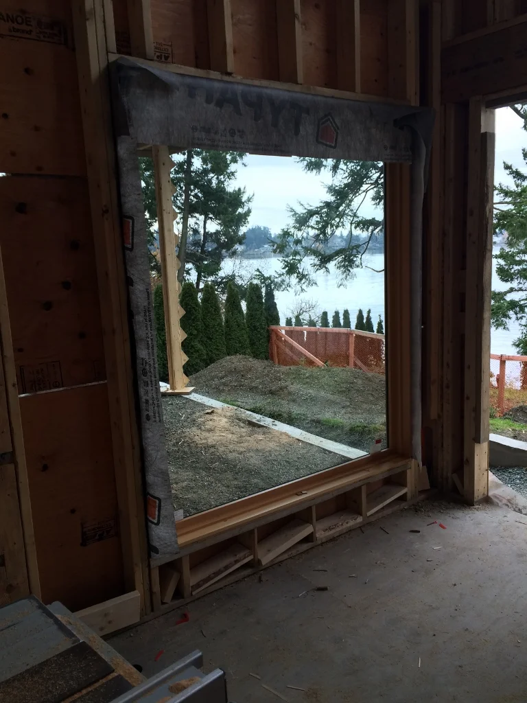 Window into the living room with the bronze trim that will be on the outside of all windows.