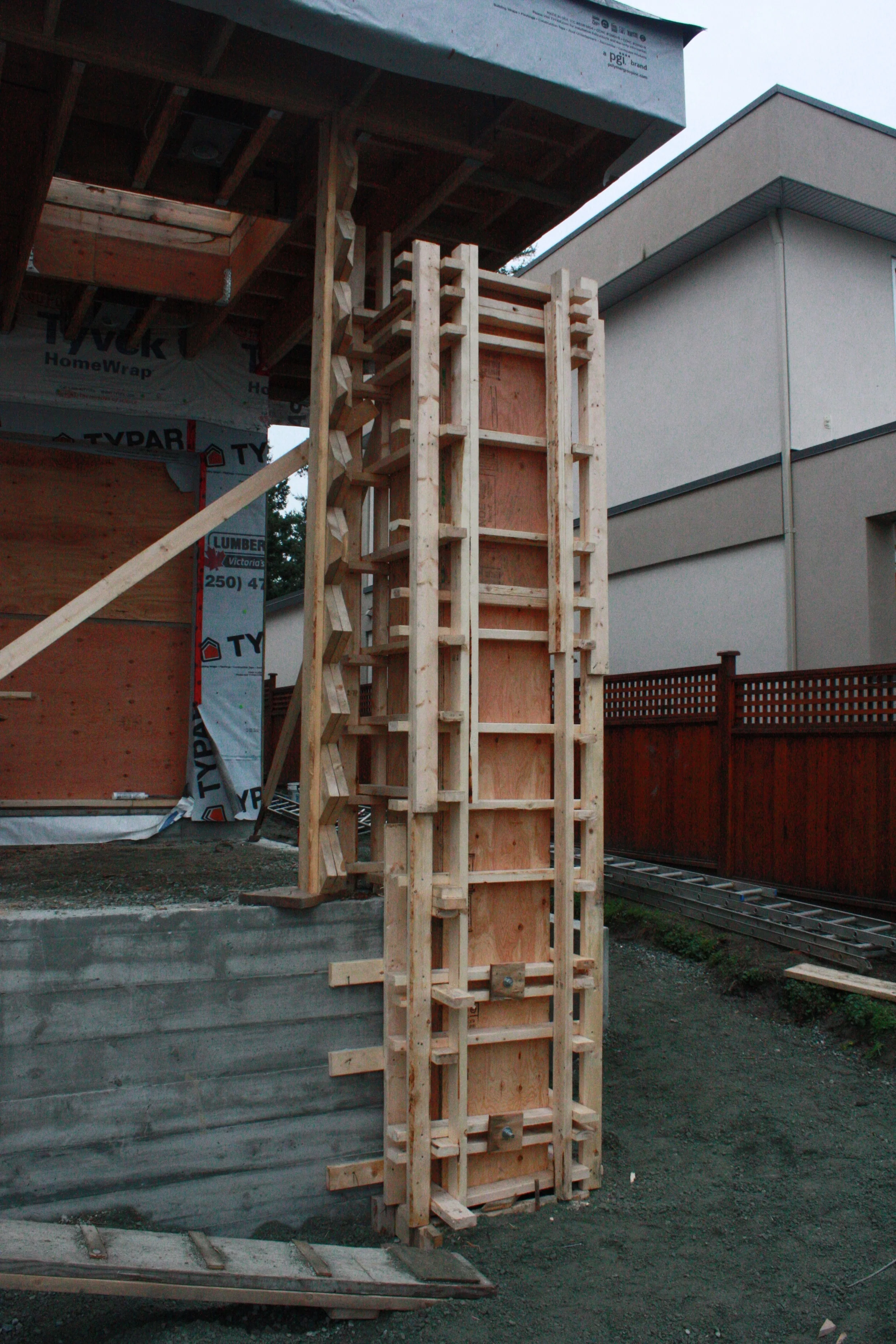 Framing for the concrete/wood pillar on the SouthEast corner of the covered patio.