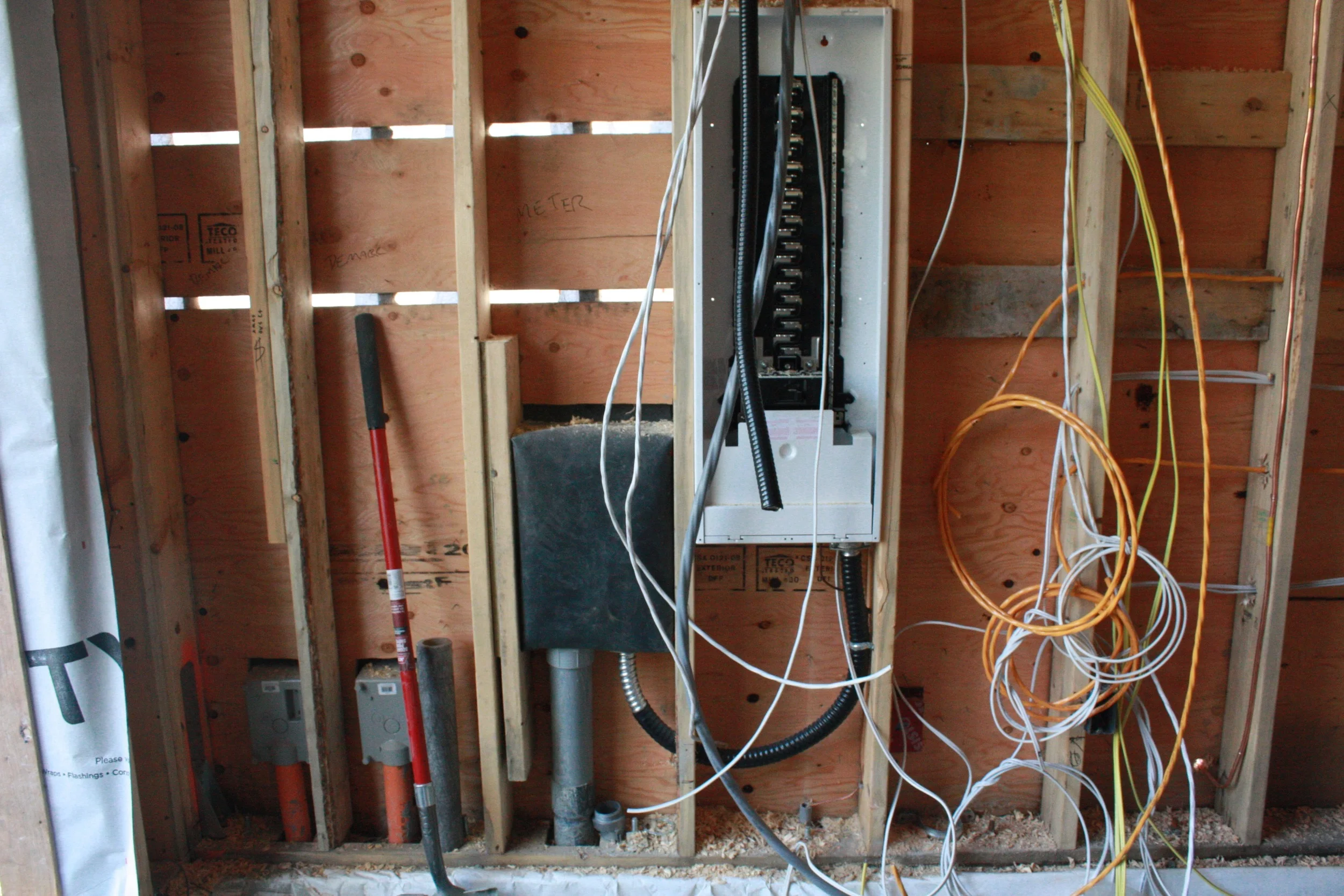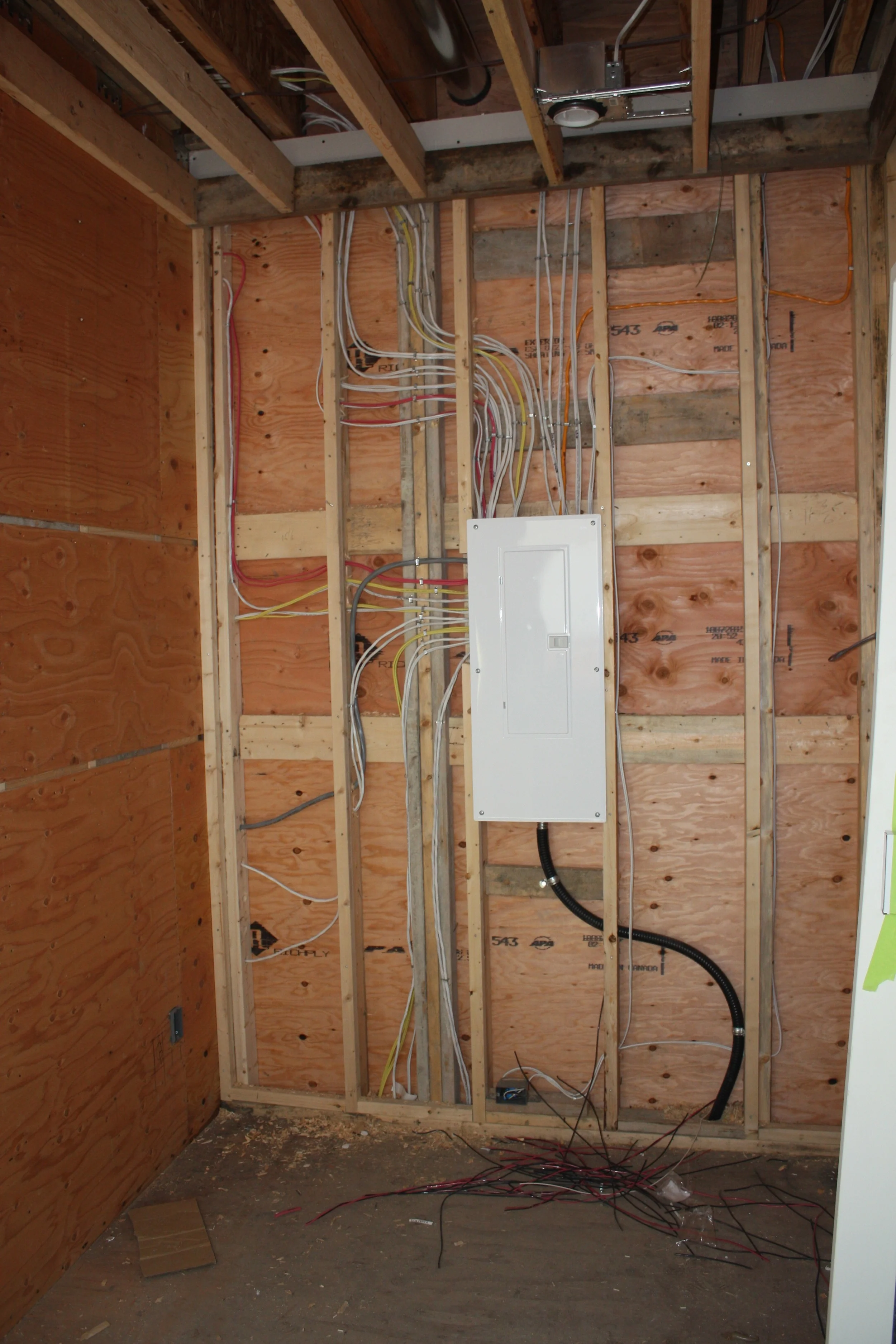 Feb. 12: As the first fix winds towards completion, I see the miles and miles of electrical wires link together to make things work. It is really amazing what will be woven behind the walls of our home... I am intrigued by the details (hours discussing where each receptacle or switch needs to be) and the larger aspects of the electrical system in our home (such as the numerous panels - control points.) I have finally made a decision on the lighting for the great room and finalized all other lighting choices.
