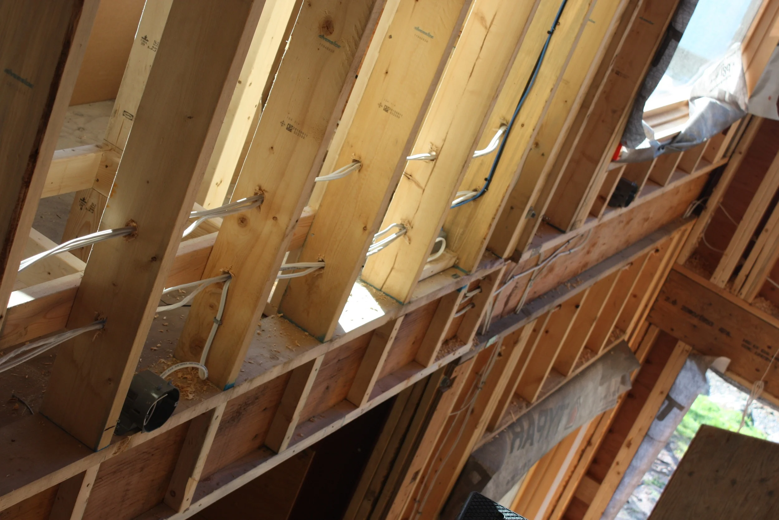 Note the "boxes" mounted to anchor (and supply power to) the Kable lighting suspended over the Great room.