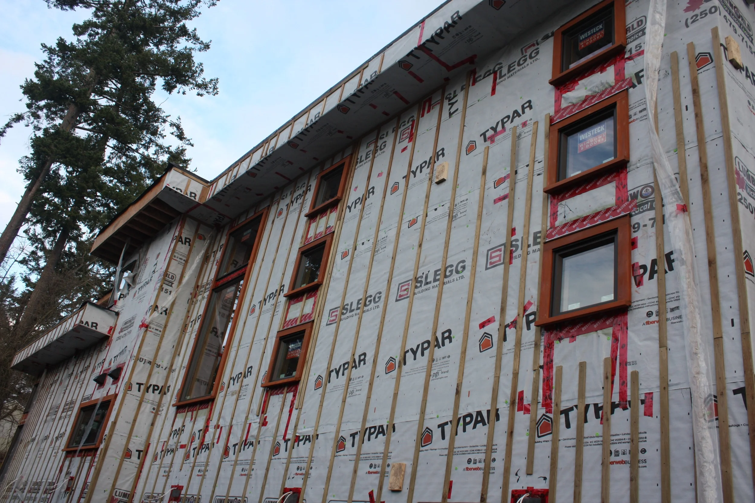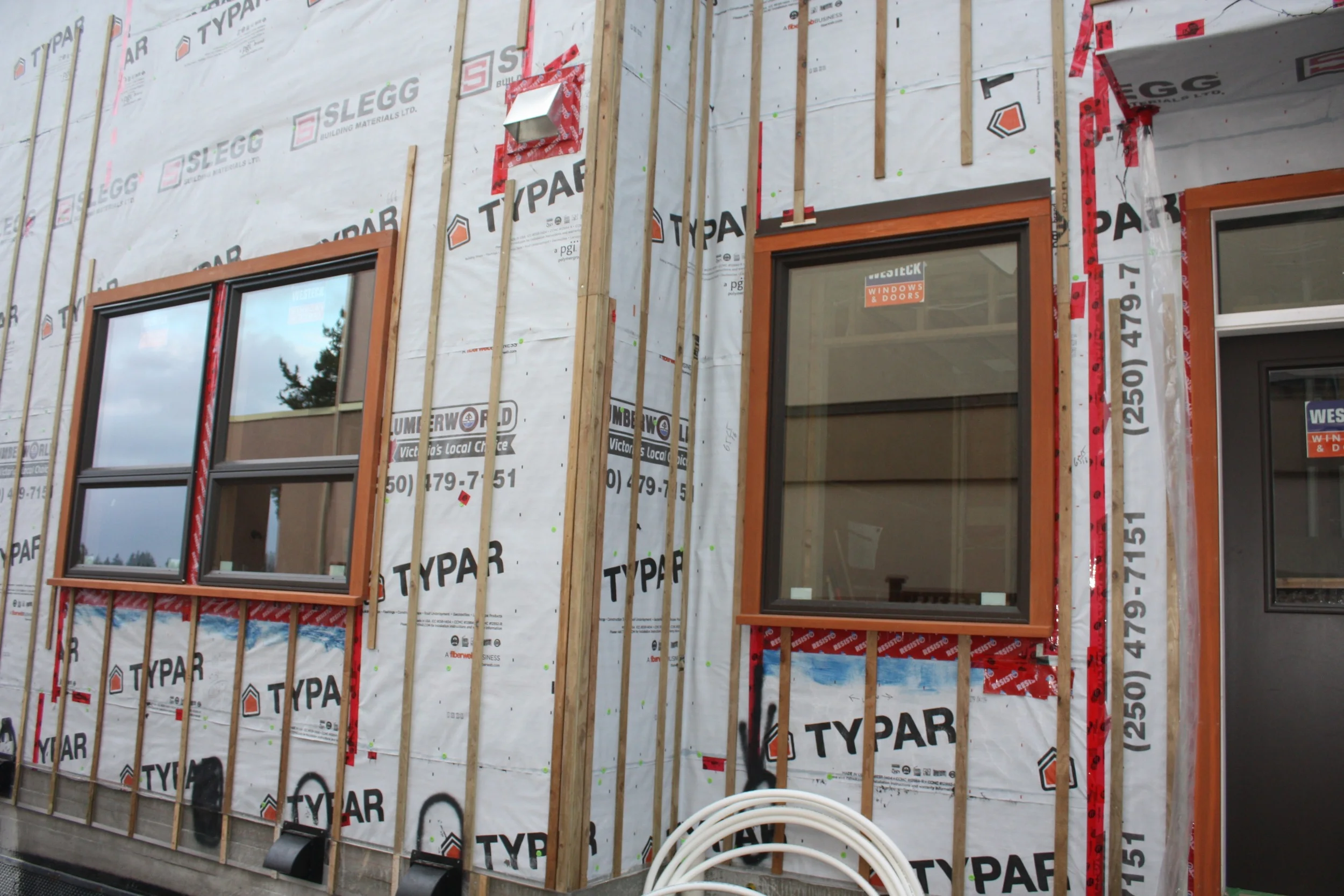 As noted before, each window and door is custom framed in cedar prior to installation of the cedar siding. this is the West side of the house.