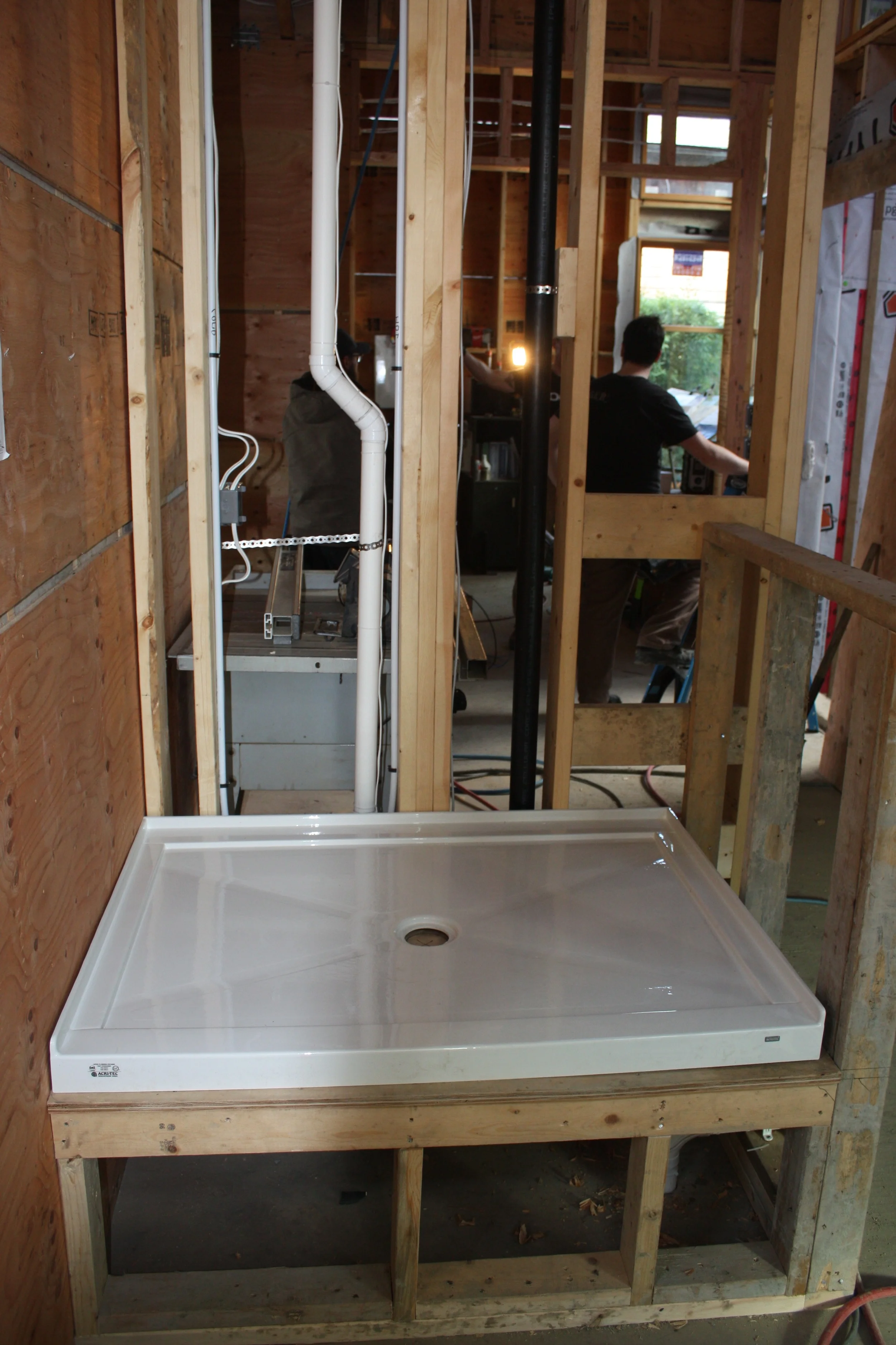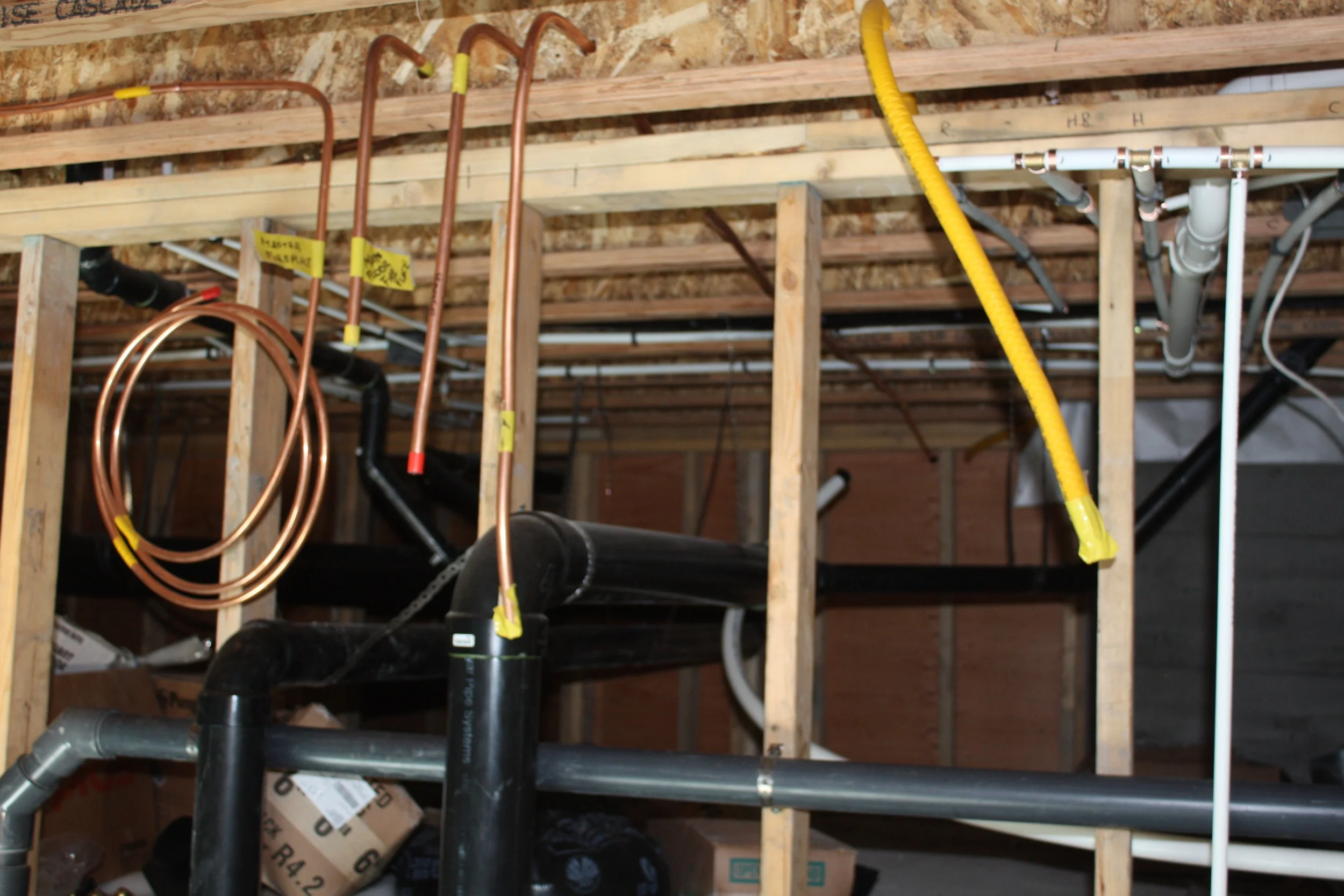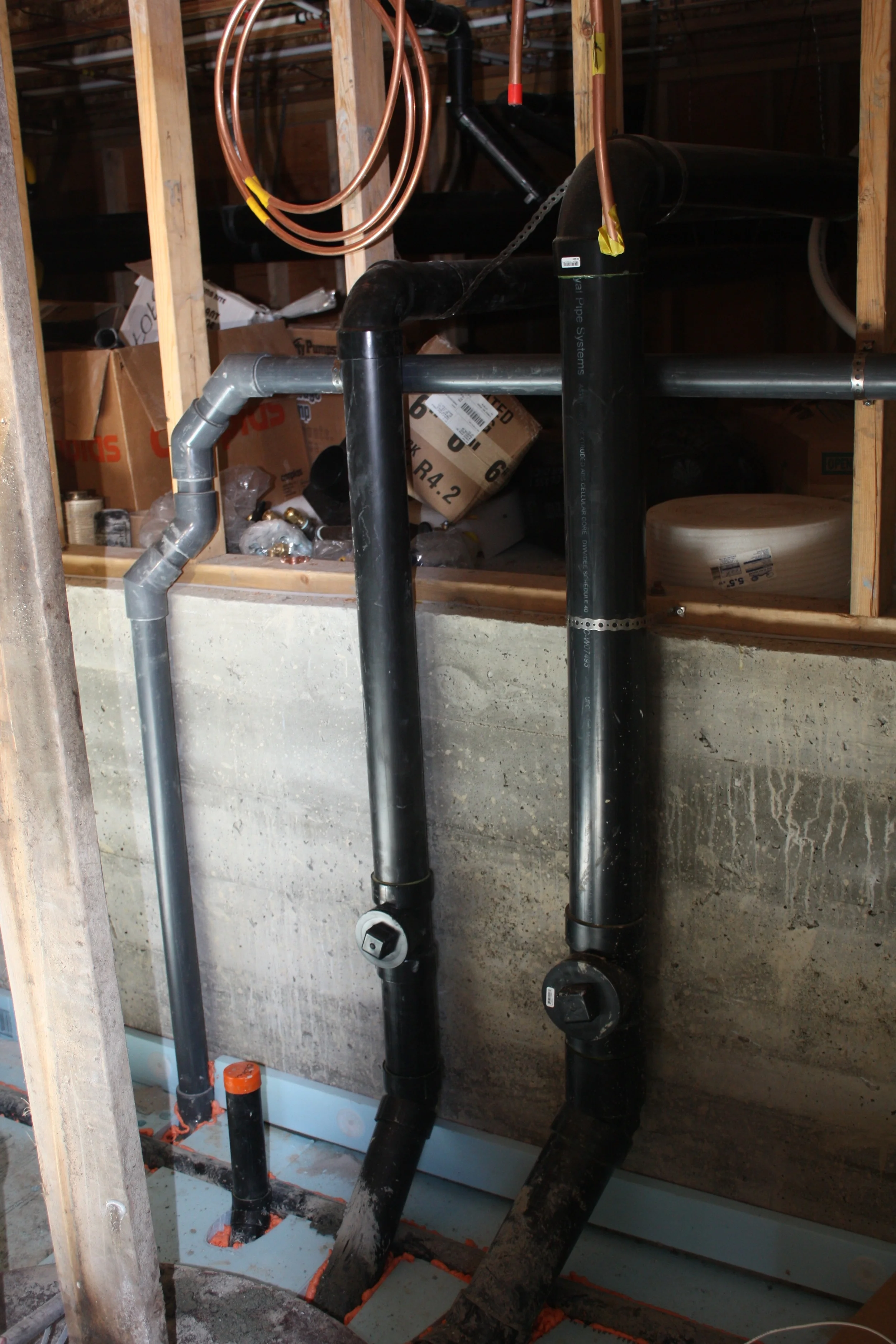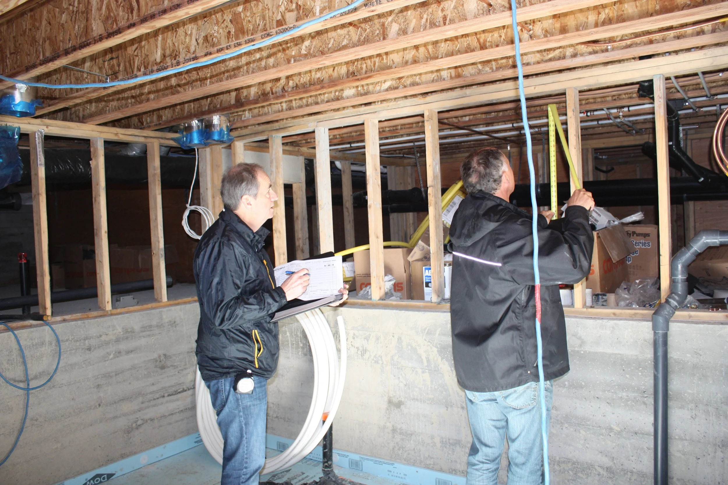 Martin and Bob measuring for a small access door between the mechanical room and the crawl space (which we can use as storage). Bob is supplying the interior doors (all 24) throughout the house.