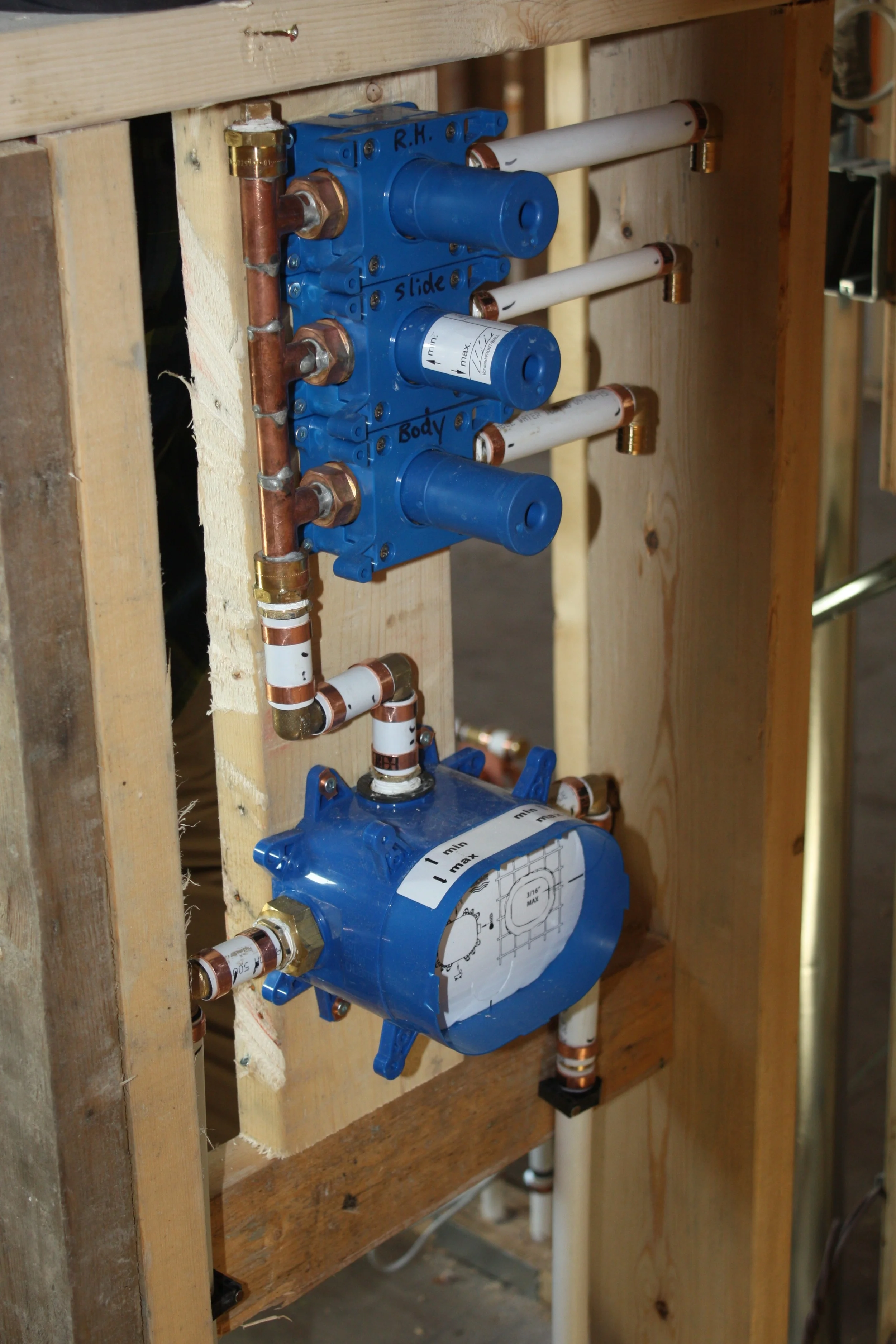Valves for the shower in our master bathroom.... one for setting the temperature and 3 volume controls..... I may need a degree to figure it all out!