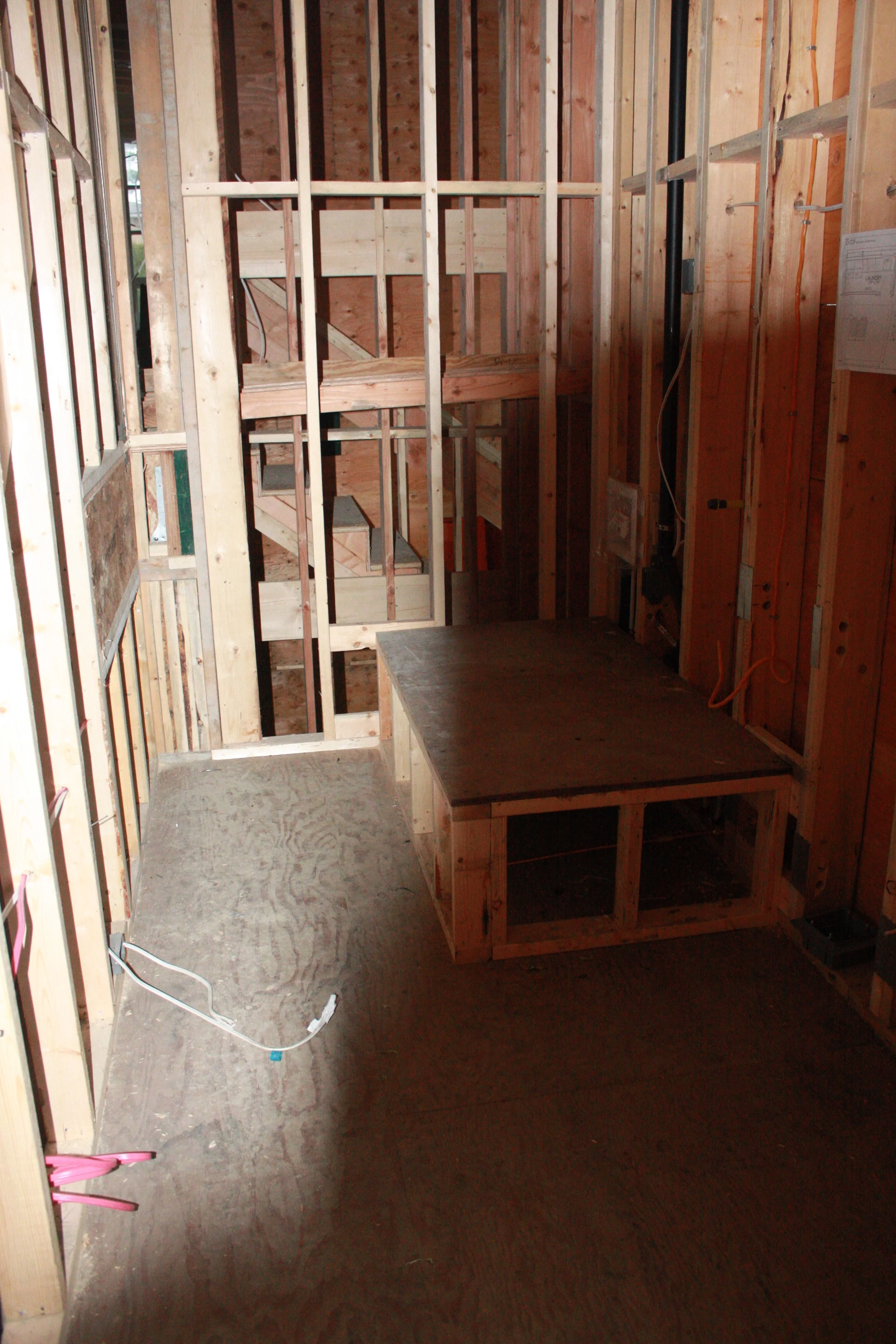 completed laundry machine pedestal in the main laundry... second floor.
