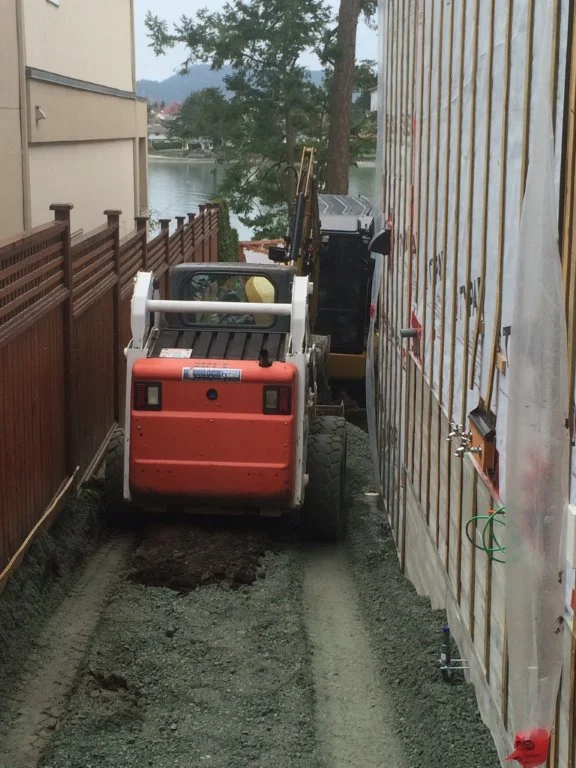 Backfill and leveling of the East side yard.