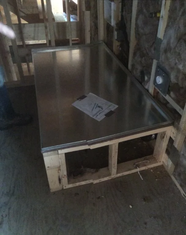 Galvanized steel pan for under the washer and dryer. A water sensor will be placed here to monitor for leaks - part of the home automation system. Very cool.