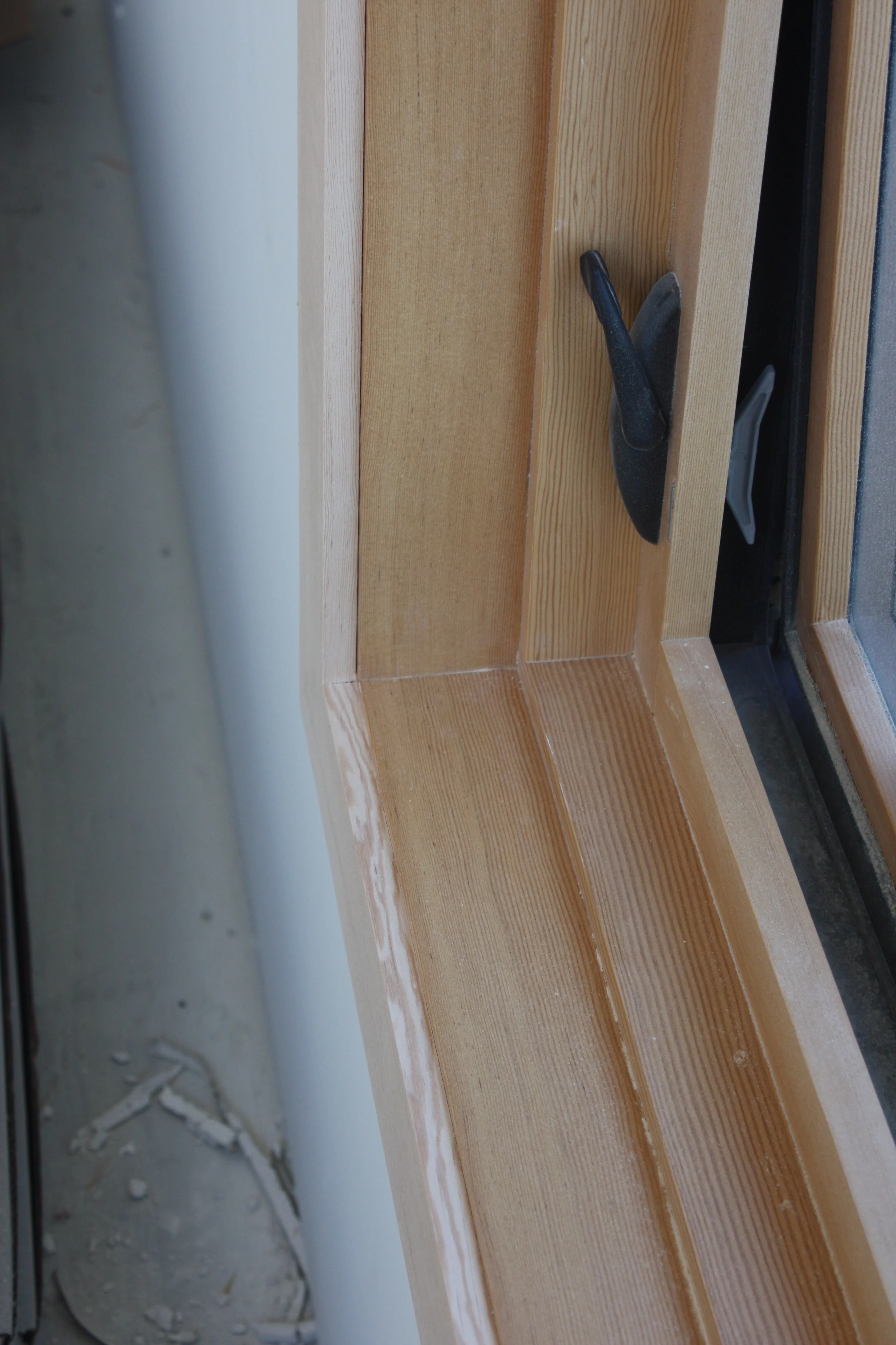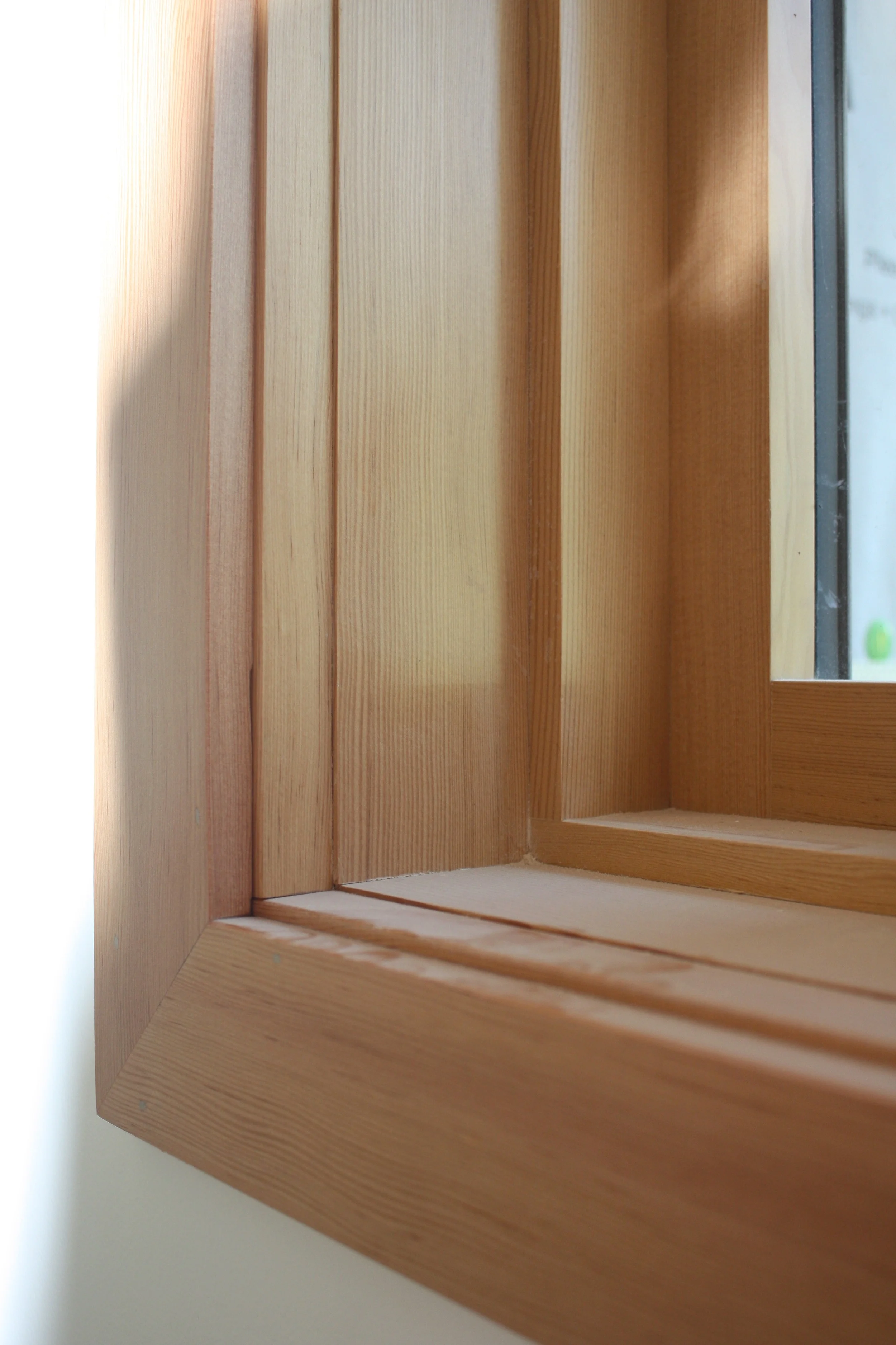 Detail of the end grain fir trim - it will be stained the same colour of the existing window trim.