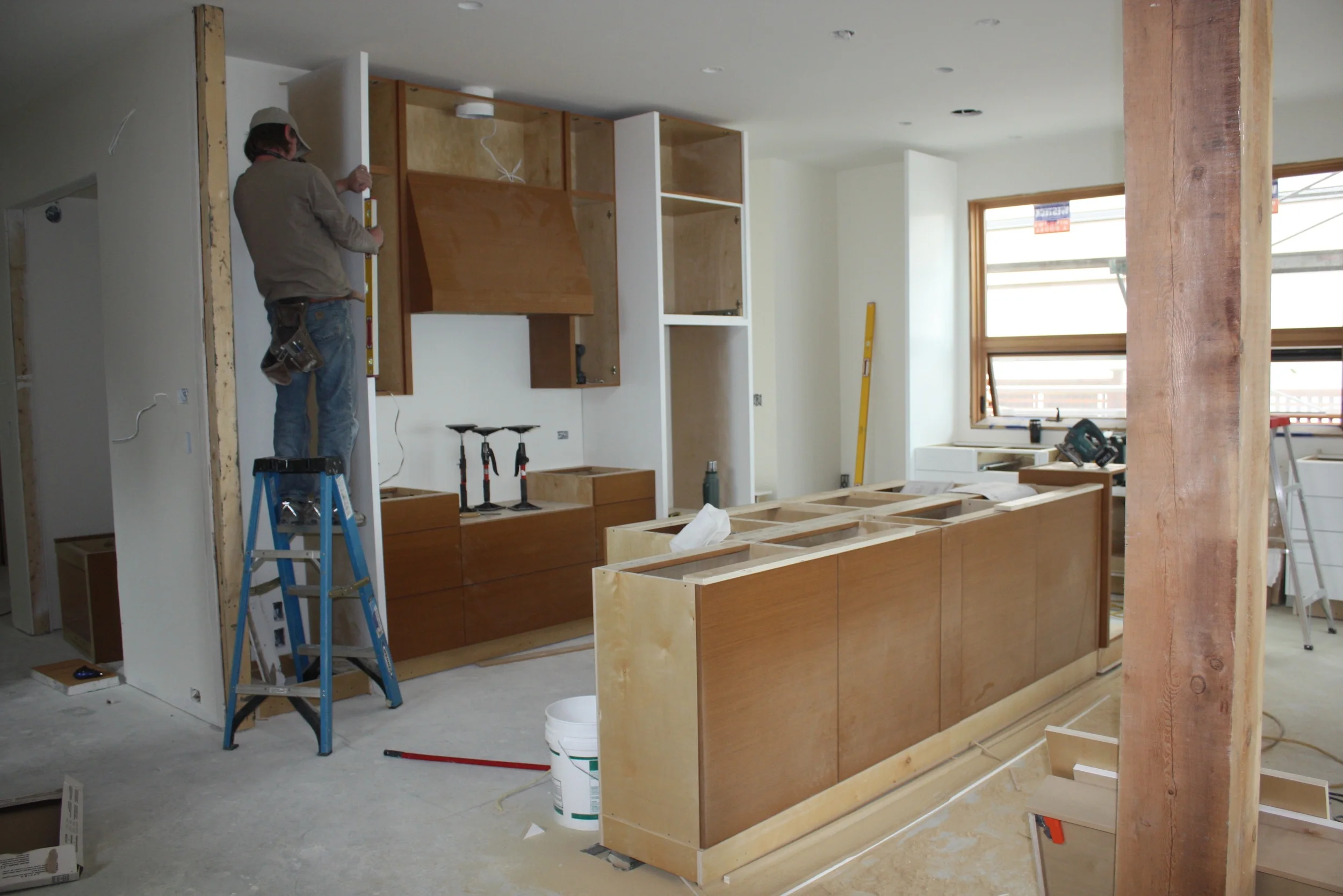 CJ installing the kitchen cabinets.... We designed the house from the kitchen out so it is sooooo exciting to see it come together.
