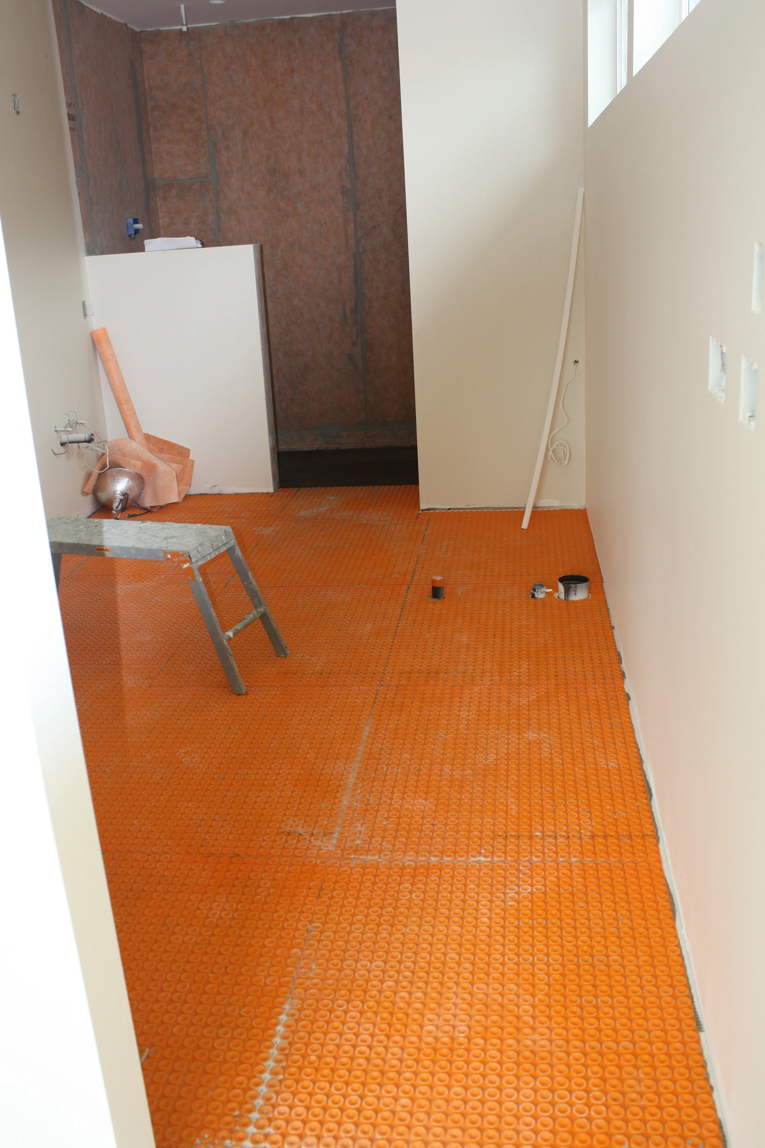 Master ensuite pre'd for floor and shower tile. We will have electric in-floor heating installed under the tile floor for warm feet winter and summer.