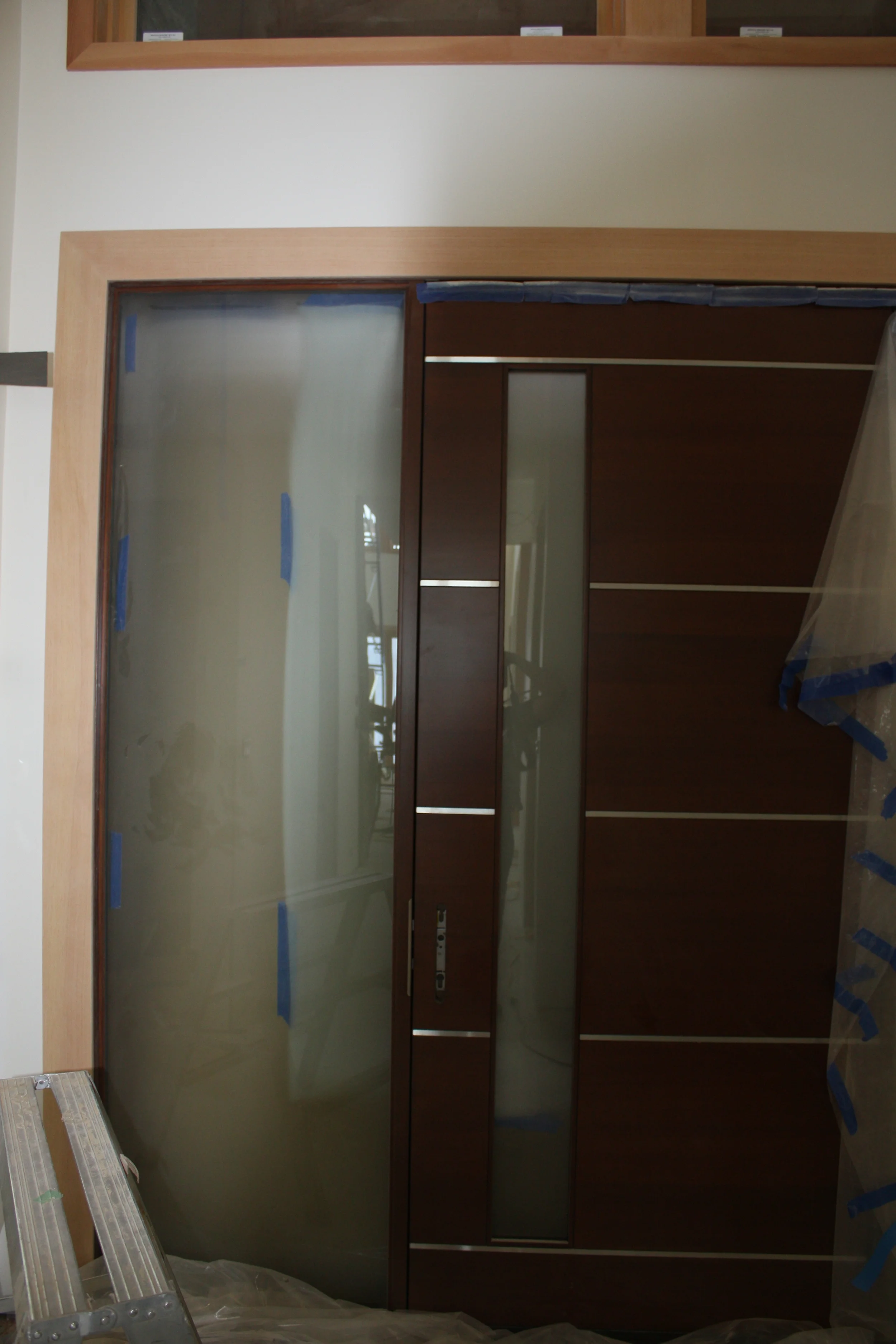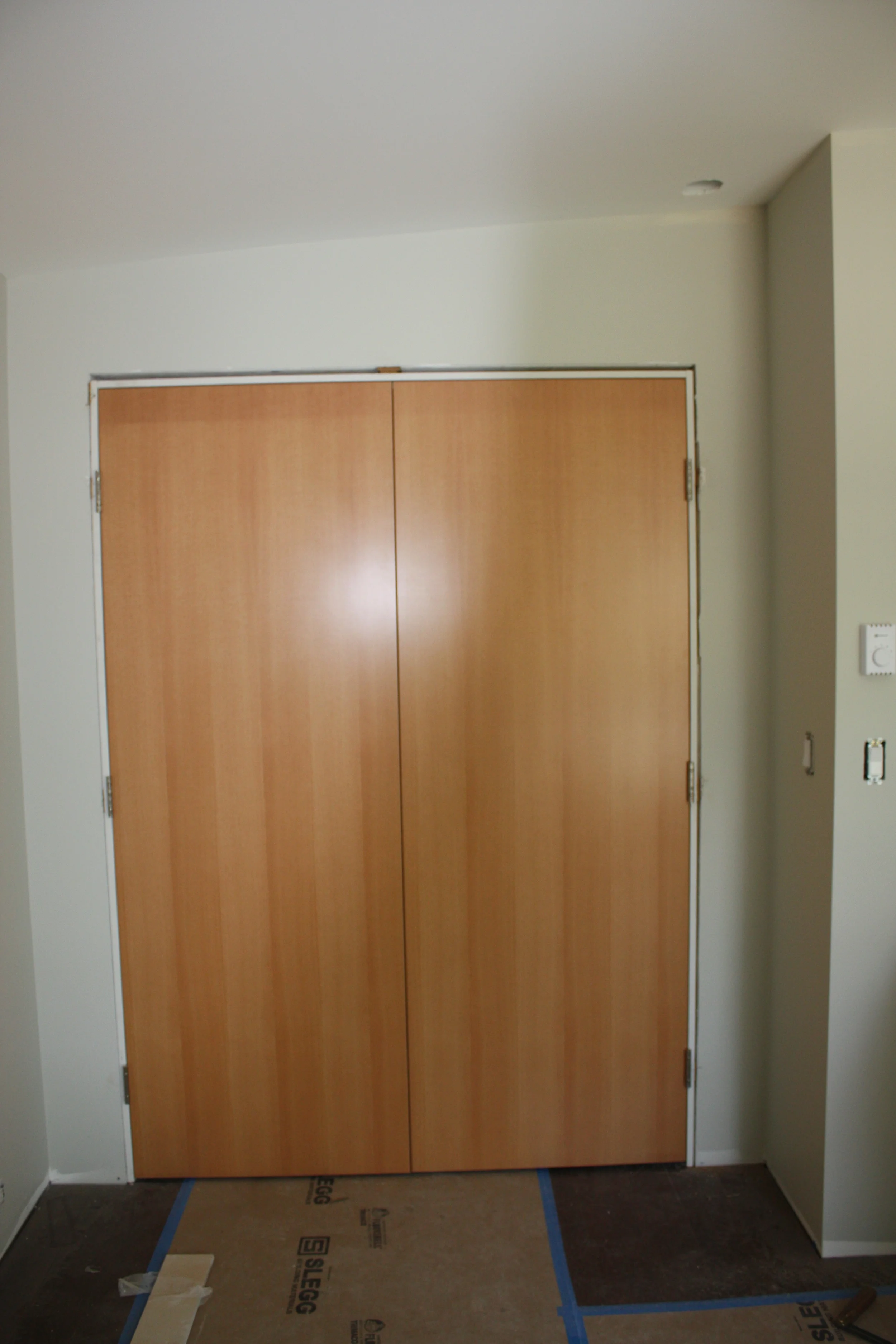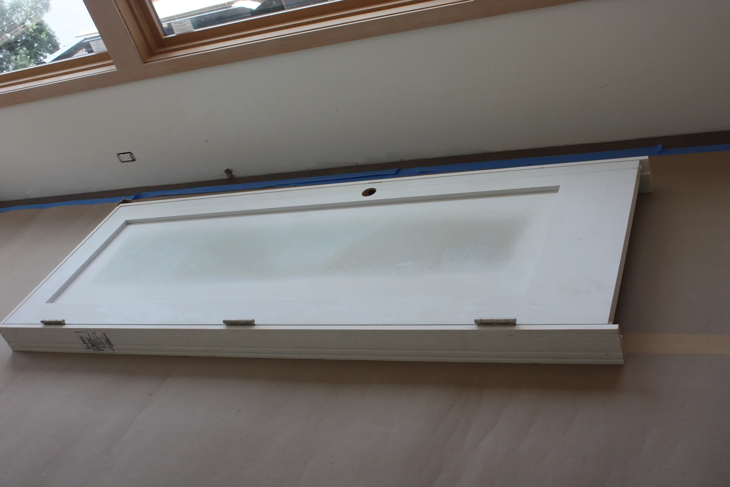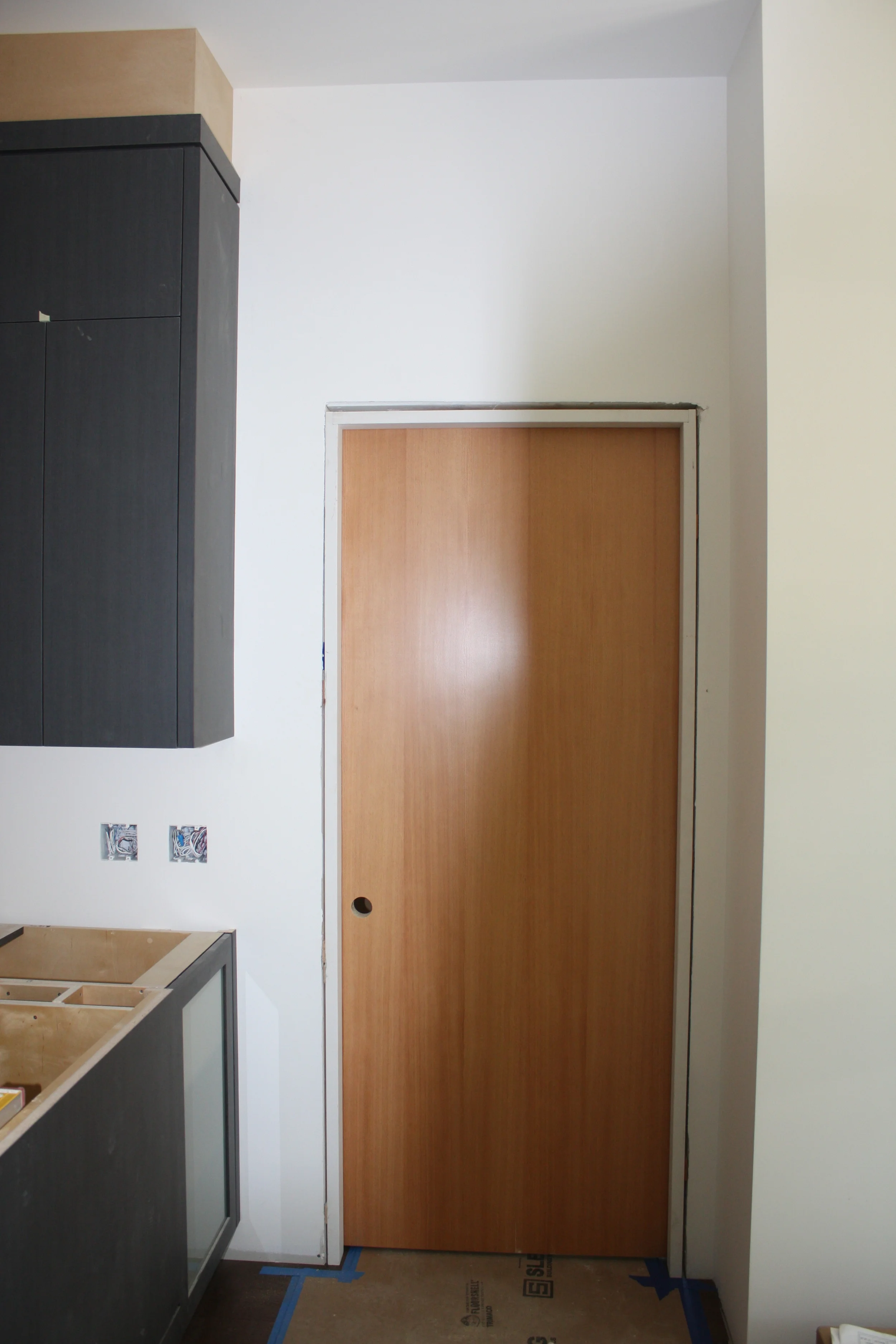 This is the paint ready door for the 'water closet' in the master ensuite. It has a laminate glass insert, currently covered....