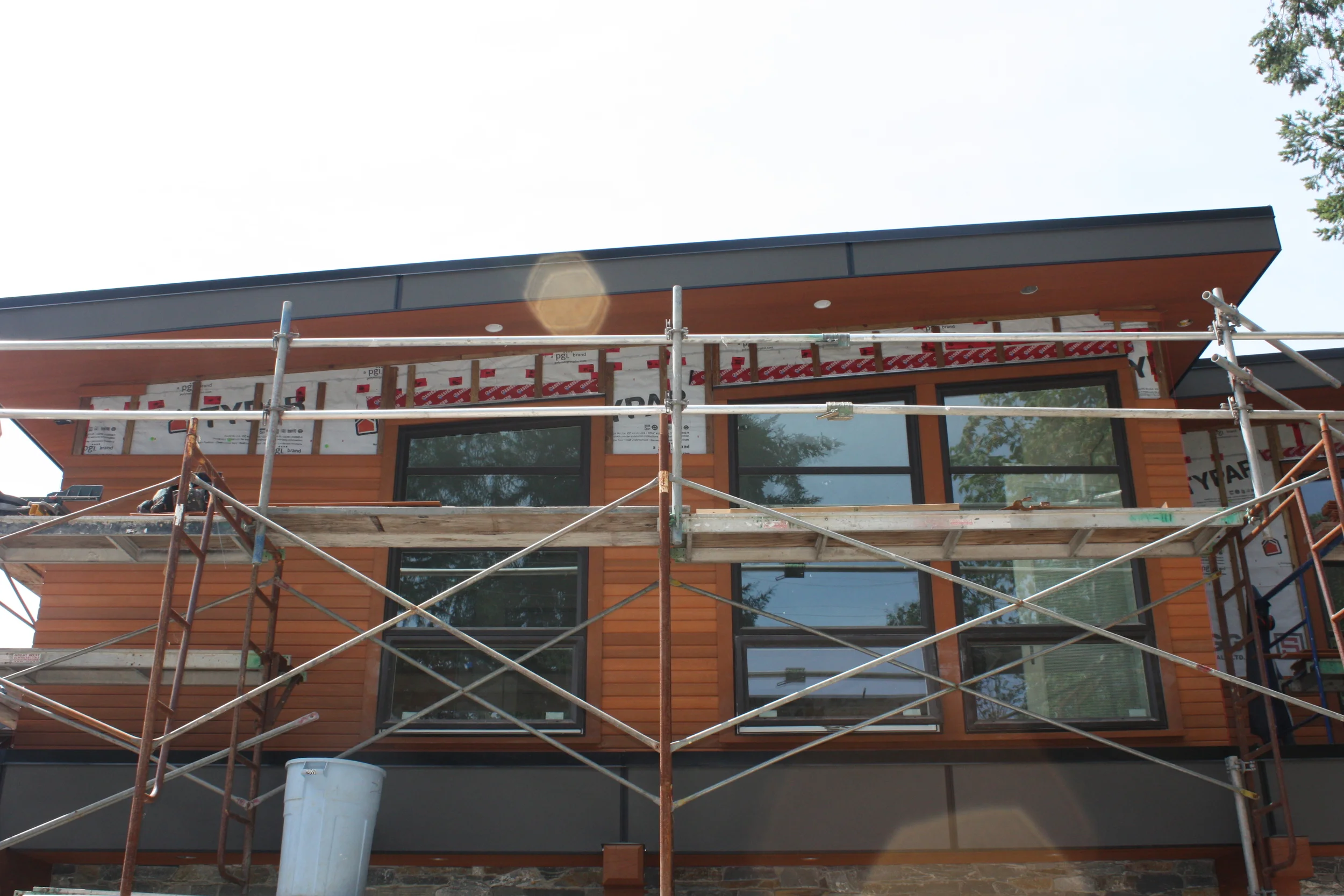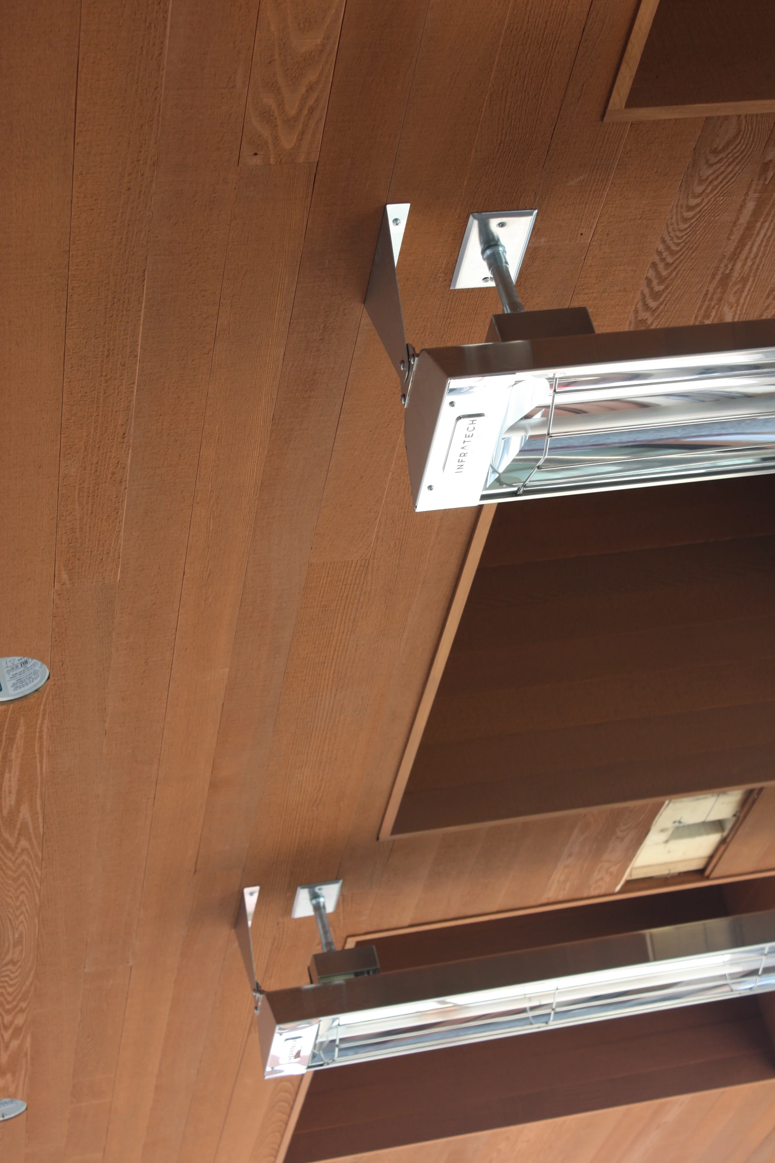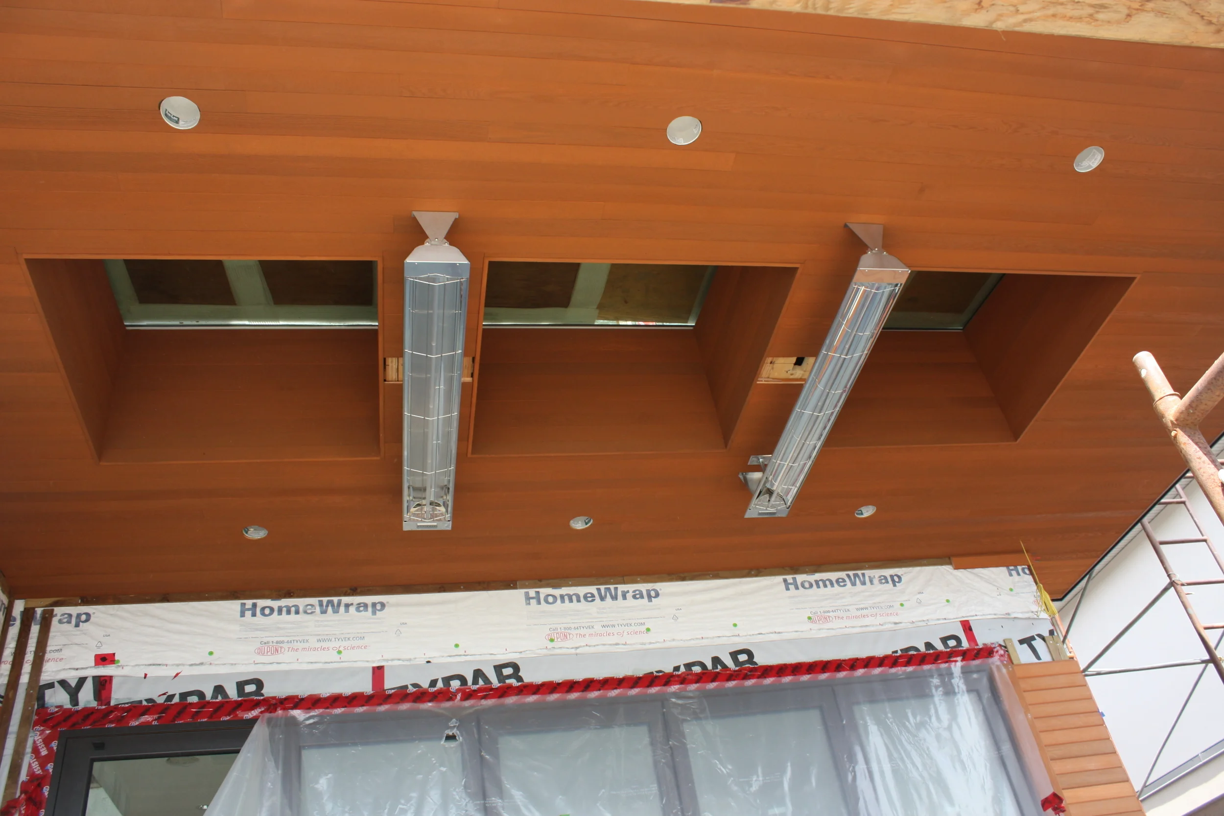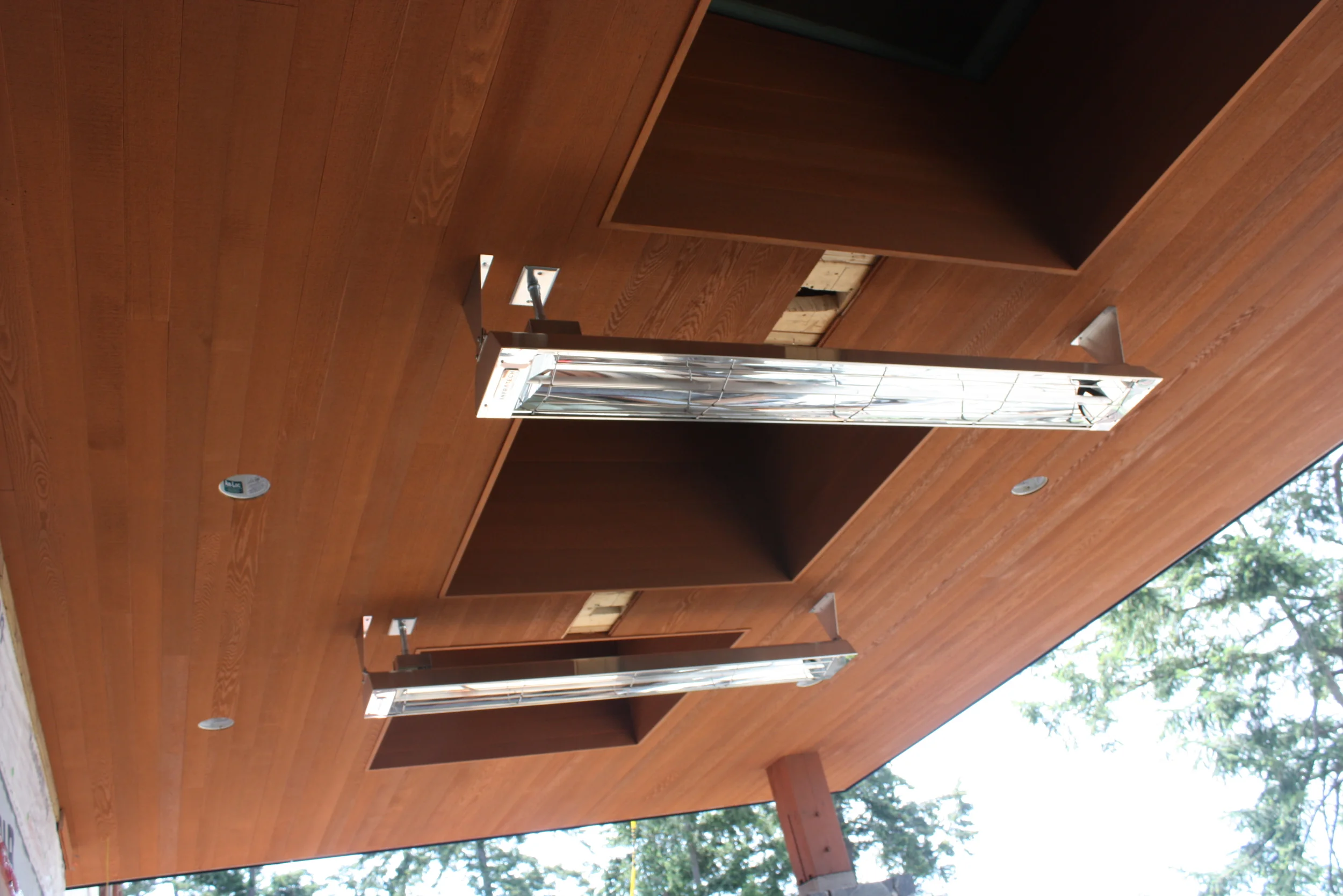 Pete, from Amped electric, has re-located the electrical access for the patio heaters... looks much better, and will be complete once the carpenters fix the soffit.