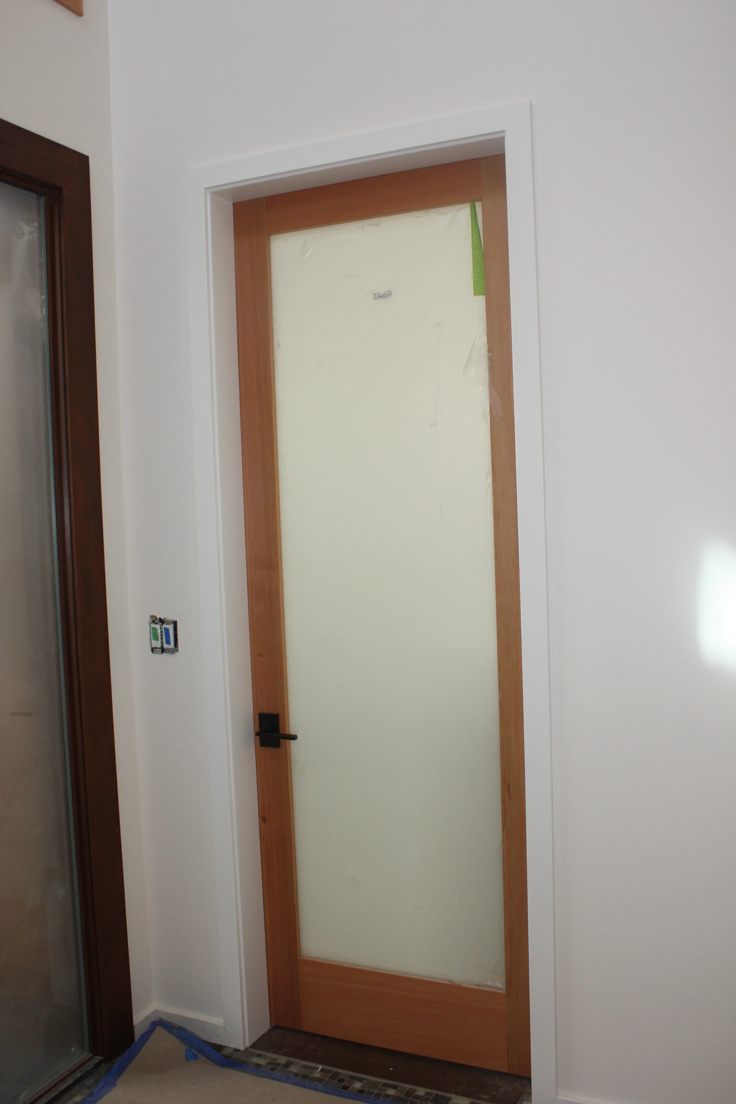 Interior door between the front entry and the mud room.