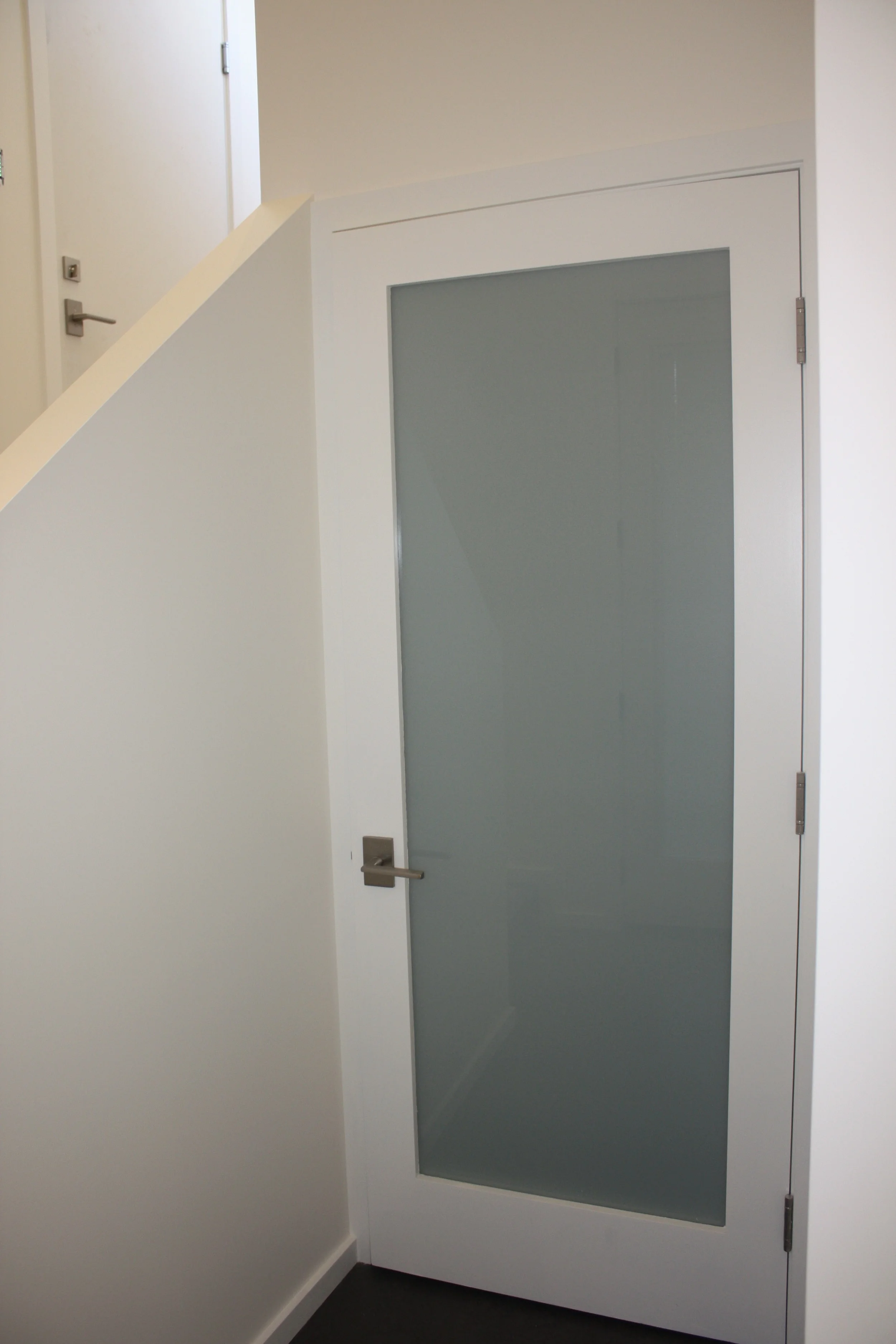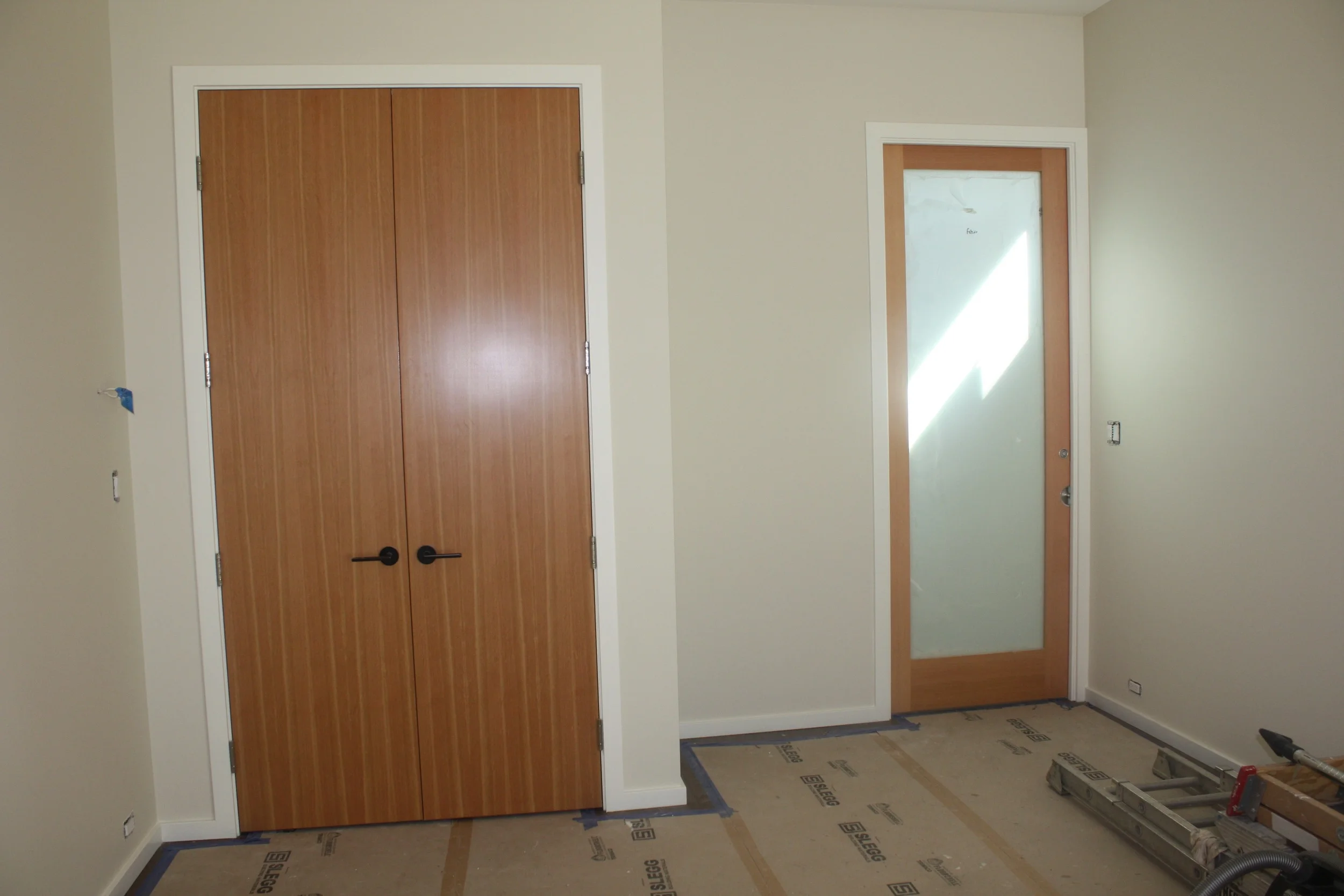 Closet and bathroom door in the den... the glass door is a pocket door....