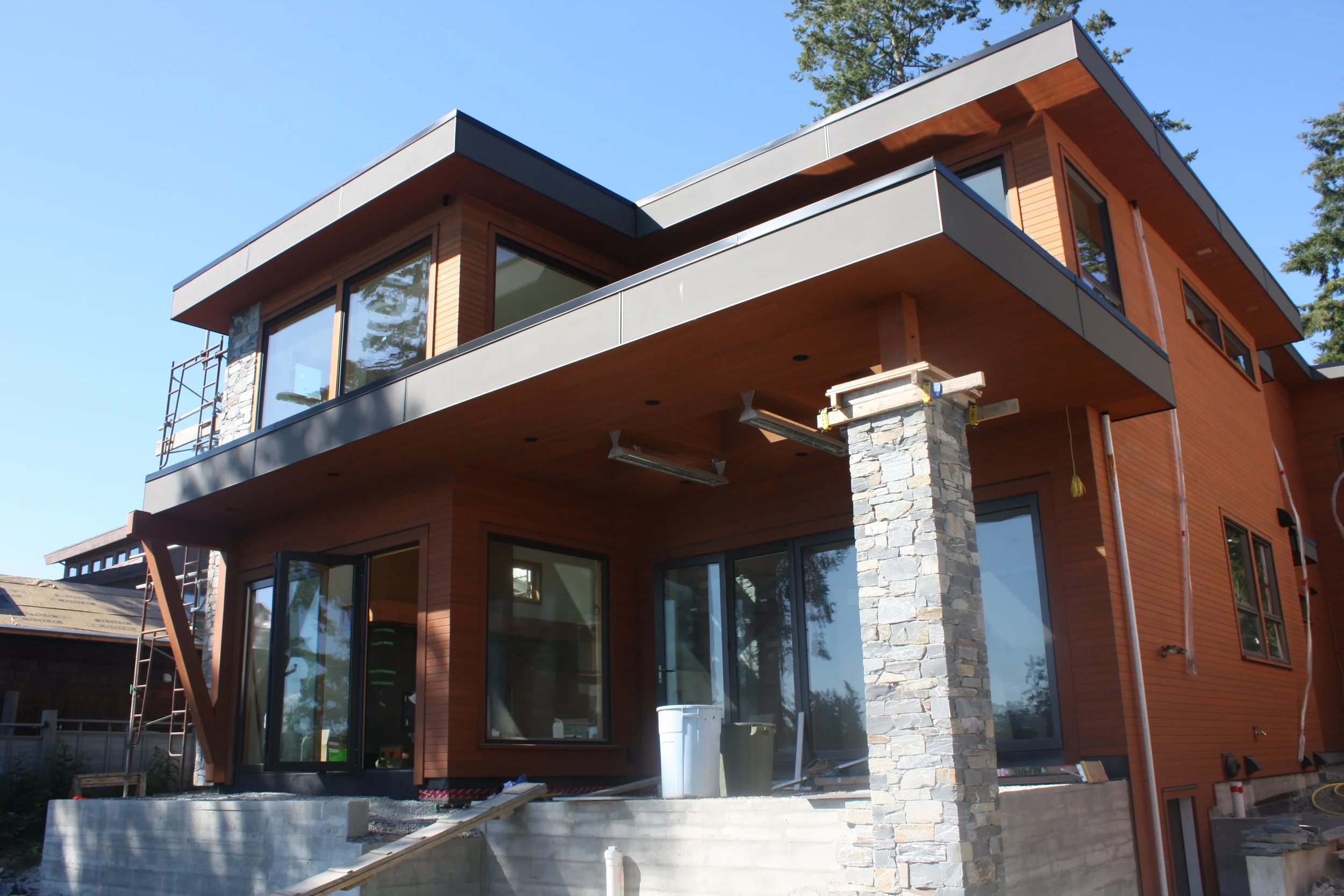 Ocean side of the house.... again, no scaffolding. The concrete cap for the pillar is framed, to be poured next week.