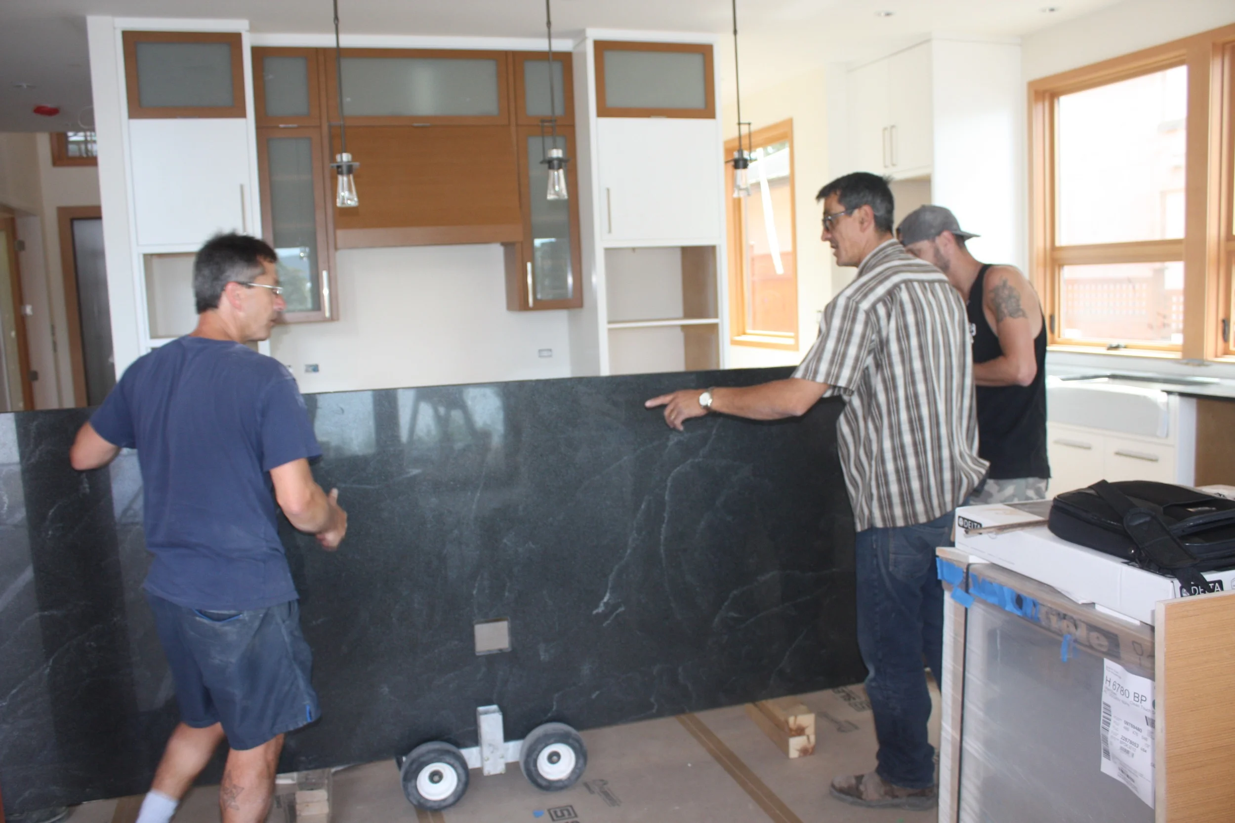 Giovanni and team getting ready to lift the island counter top....