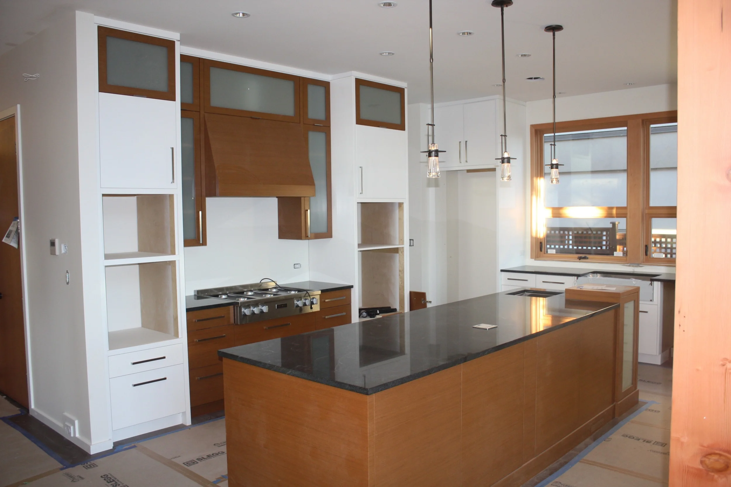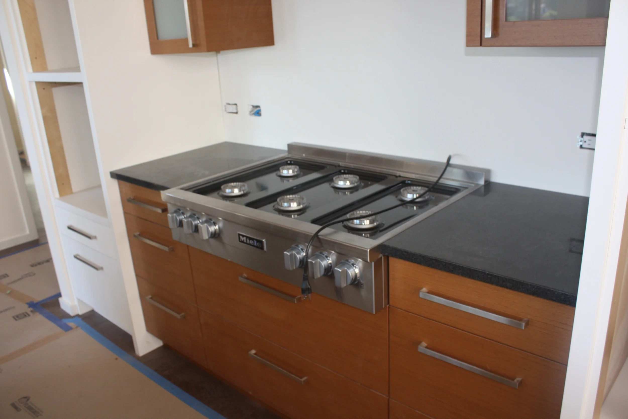 Counters surrounding the range top, which is 'dry fit' here to size the counters.....