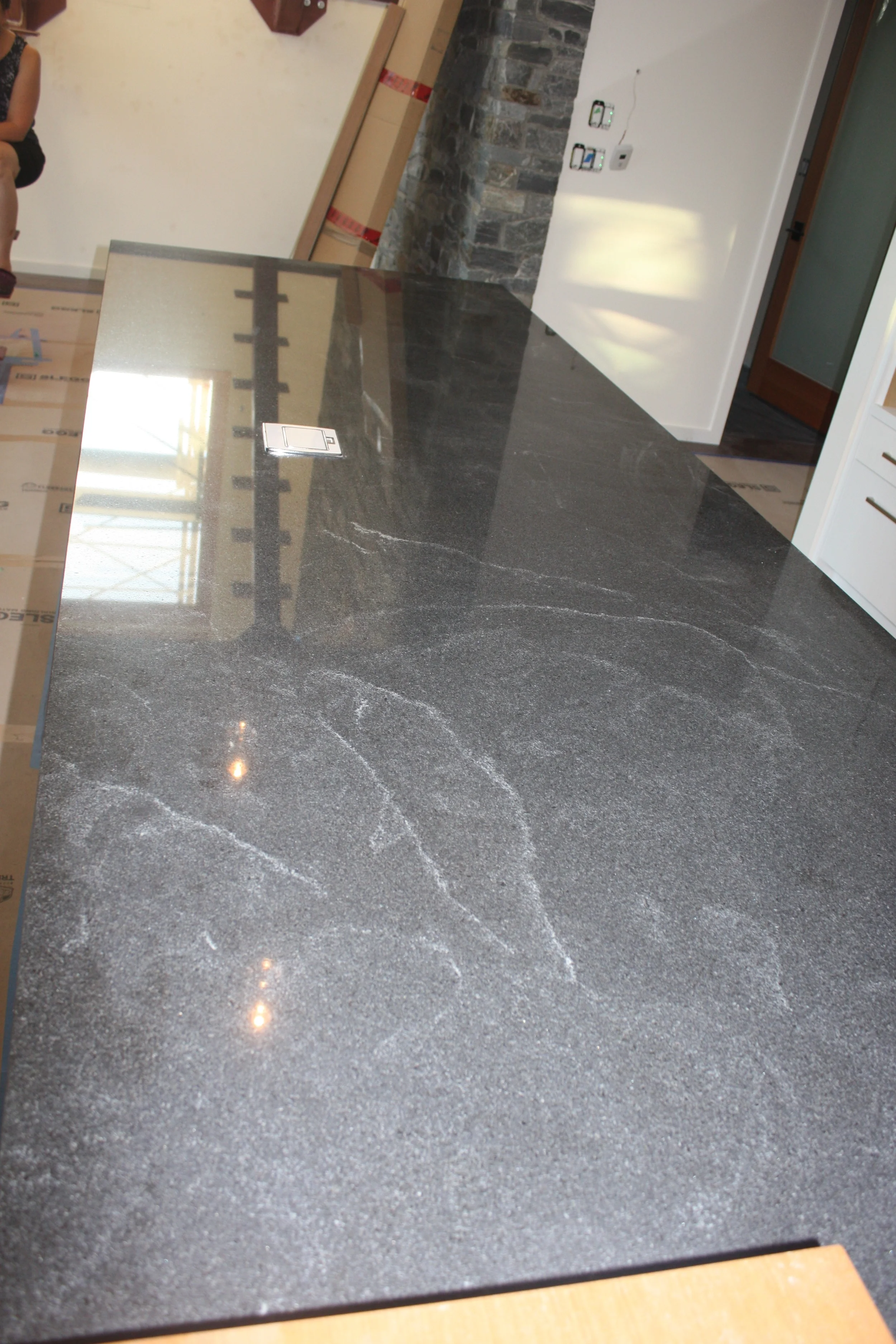 Sliding the single piece of granite into place.