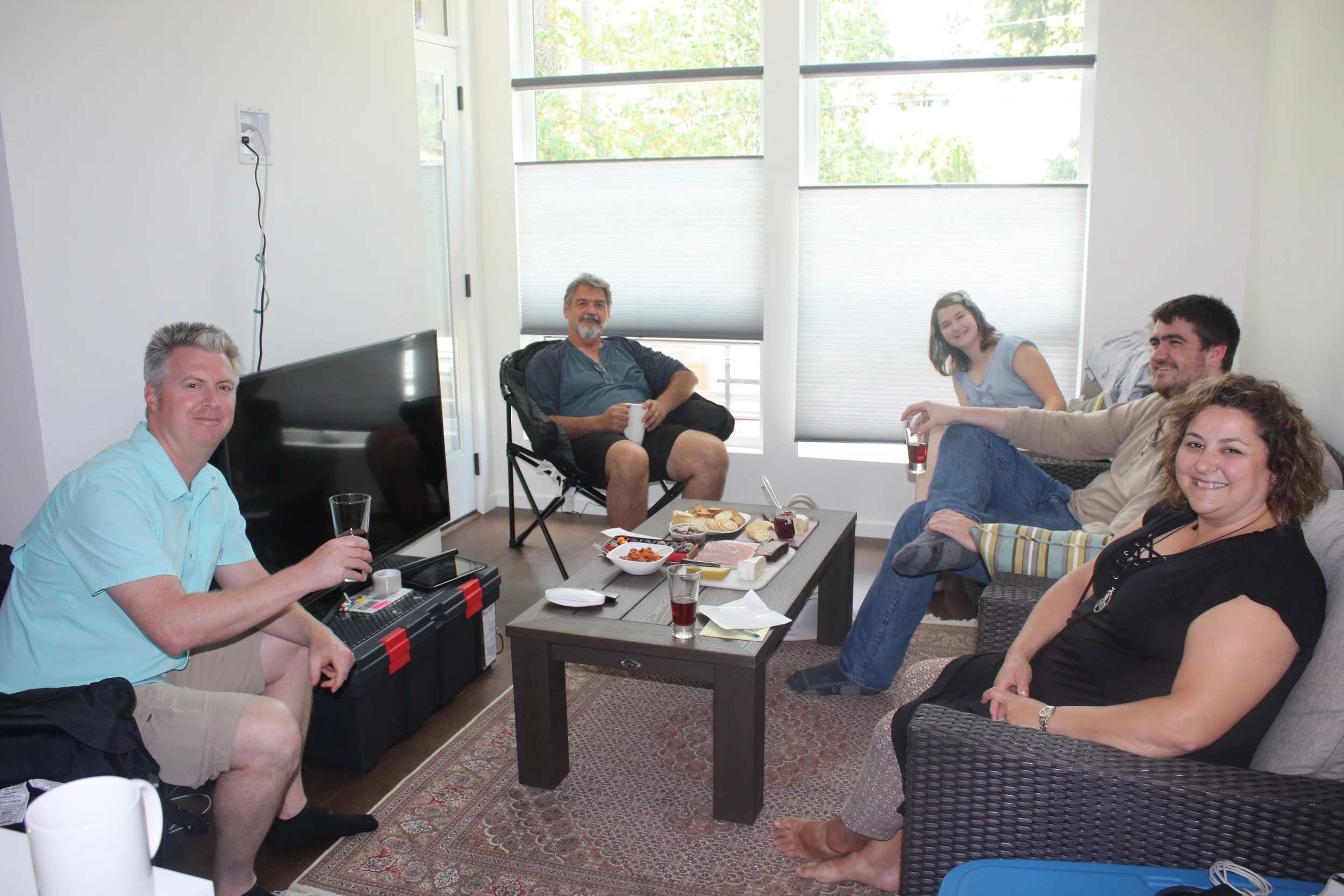 A celebration lunch as we settle into the guest rooms above the garage - All we need is something to sit on, something to watch, and a carpet to make us feel at home. Thanks for the food and good company!!
