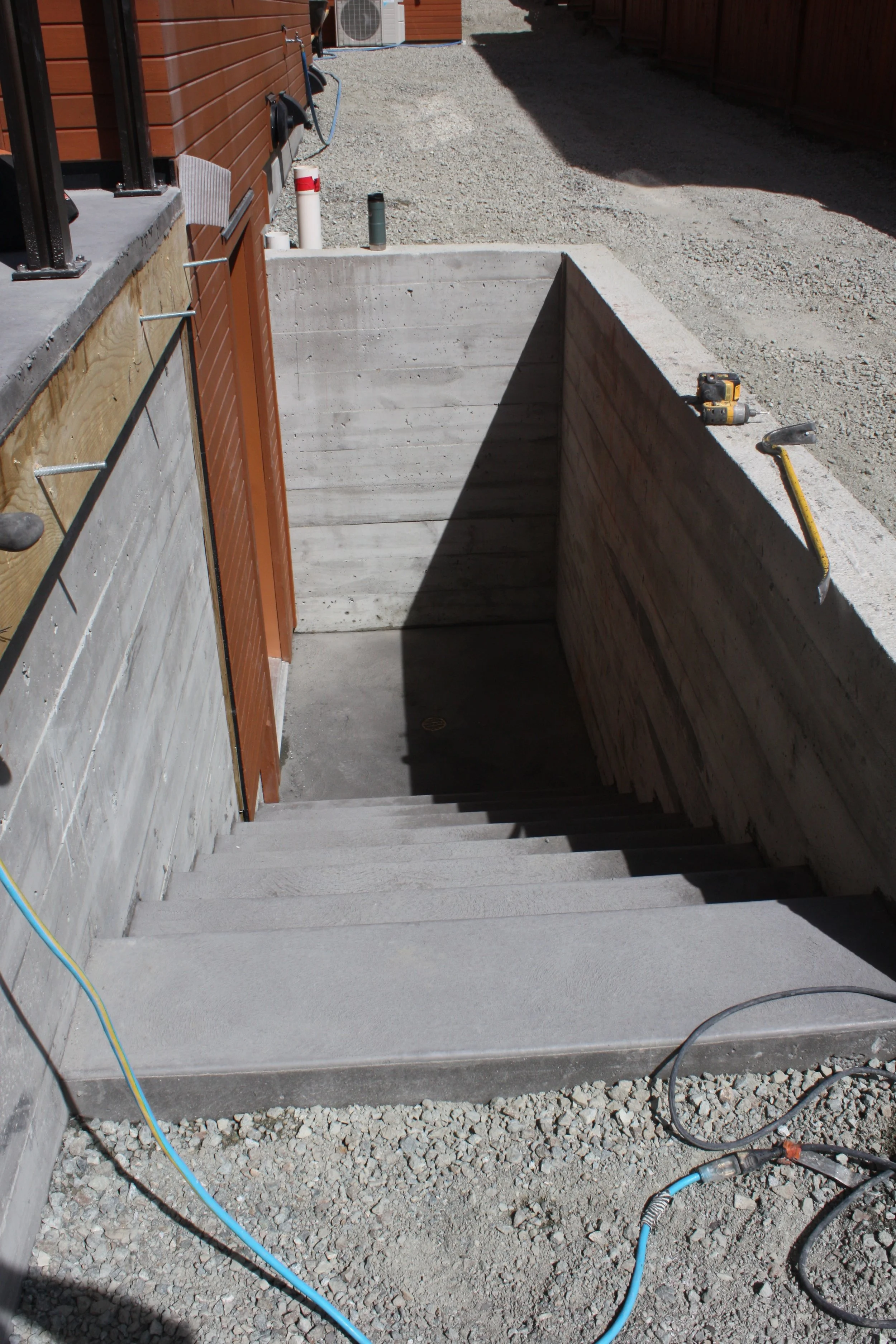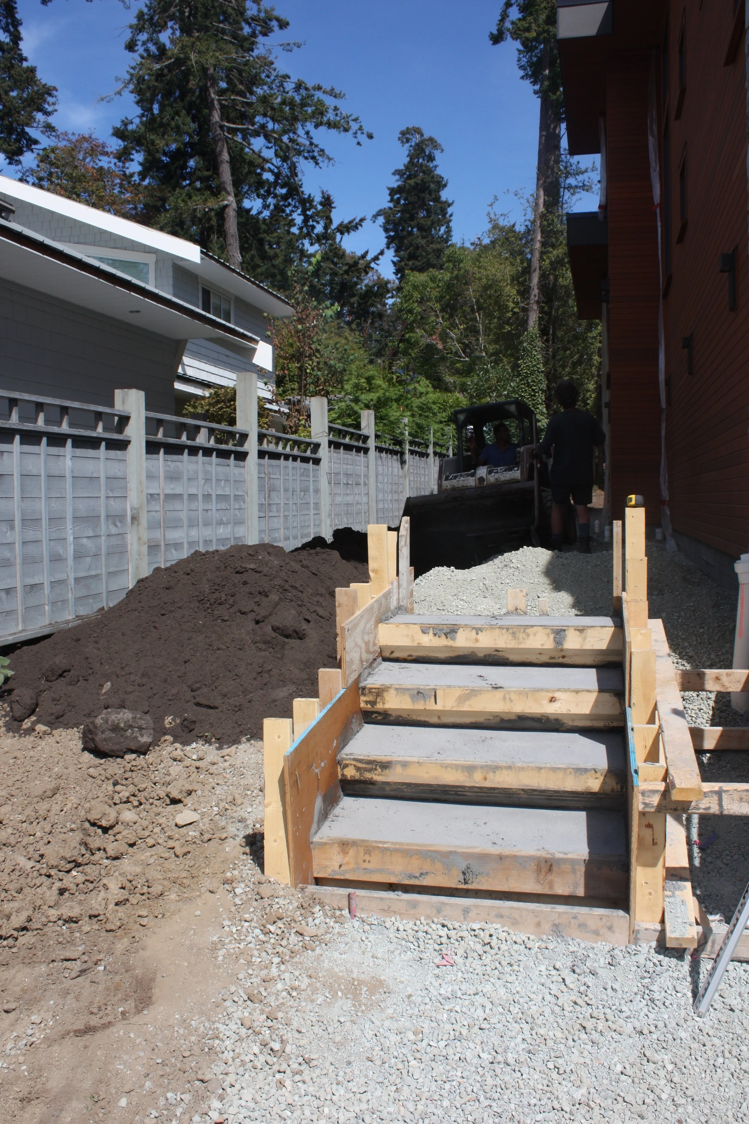 Short stairs on the West Side of the house from the (potential) patio to the (potential) sidewalk.